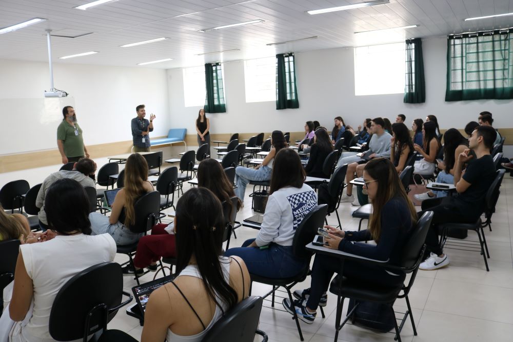 O médico e professor catedrático em Angola, Roberto Lardowyt Ferrer, proferiu uma palestra aos alunos do curso de Medicina da Univás na manhã desta quinta-feira, dia 25 de setembro, na sala 6 da Unidade Central. Ele ministrou uma palestra sobre os aspectos éticos em Angola, mostrando que, na área da medicina, a ética se coloca diante de situações específicas no país onde ele atua.