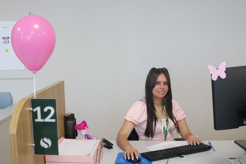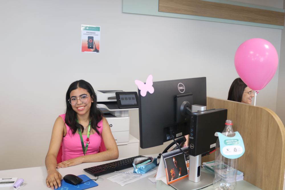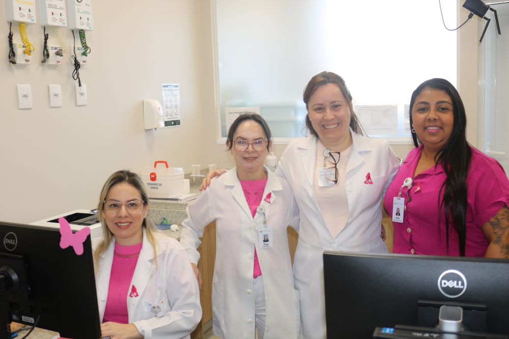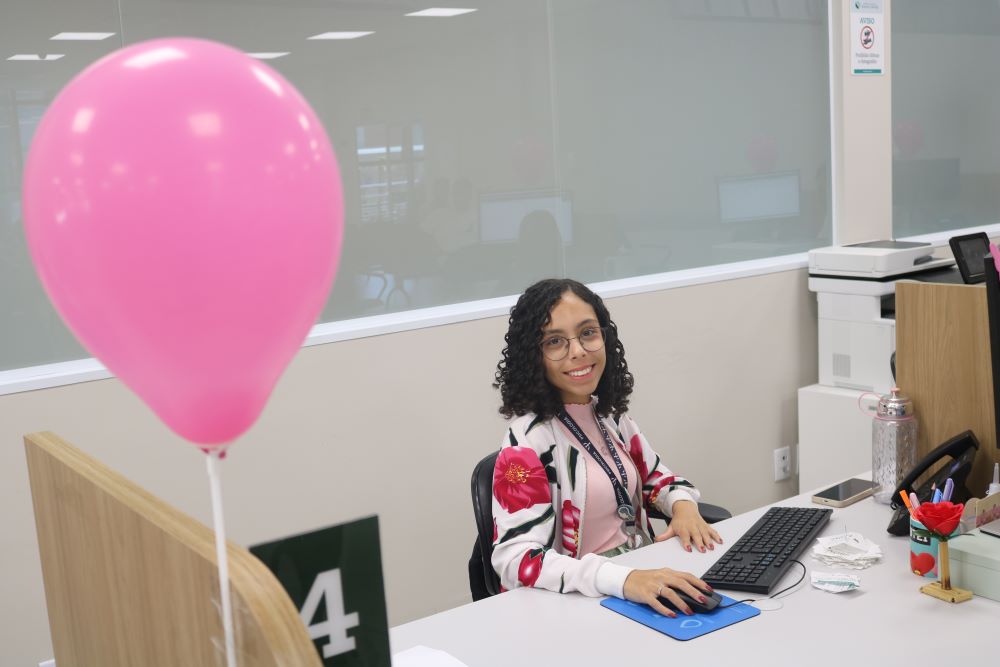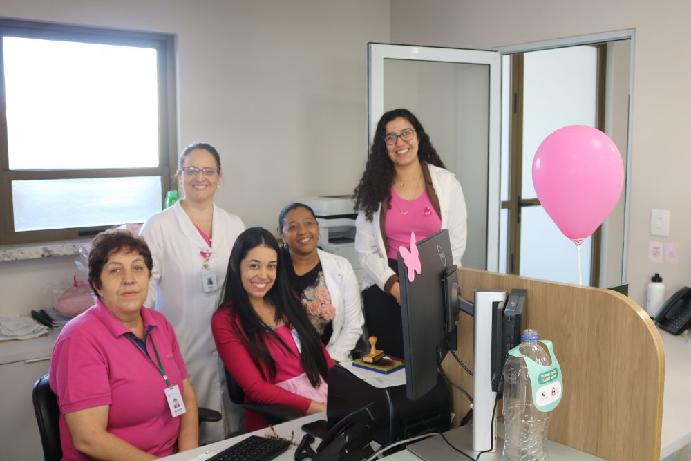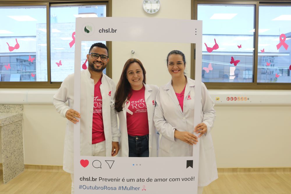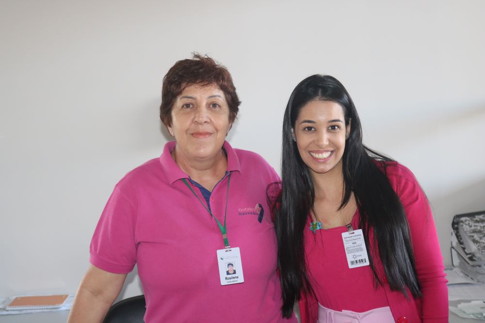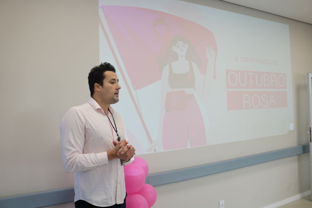 A enfermeira Priscila Andrezza Aquino falou da importância da campanha Outubro Rosa. “Nesse mês, queremos proporcionar à população, aos pacientes e acompanhantes, que estão aqui em atendimento, um momento especial, com palestra do médico Marcus Vinícius Silva. Ele falou sobre os fatores de risco, sobre o autoexame, para que as pessoas tenham consciência da importância do diagnóstico precoce. Quando ocorre o diagnóstico precoce, o paciente tem chances enormes de cura. Além das palestras, também enfeitamos toda a unidade com detalhes de rosa, que é a cor do mês, e preparamos momentos musicais para os pacientes. Uma voluntária também vai ensinar as mulheres a fazer o turbante, entre outras atividades. Agradeço a dedicação de toda equipe do hospital nessas atividades”, conta Priscila.