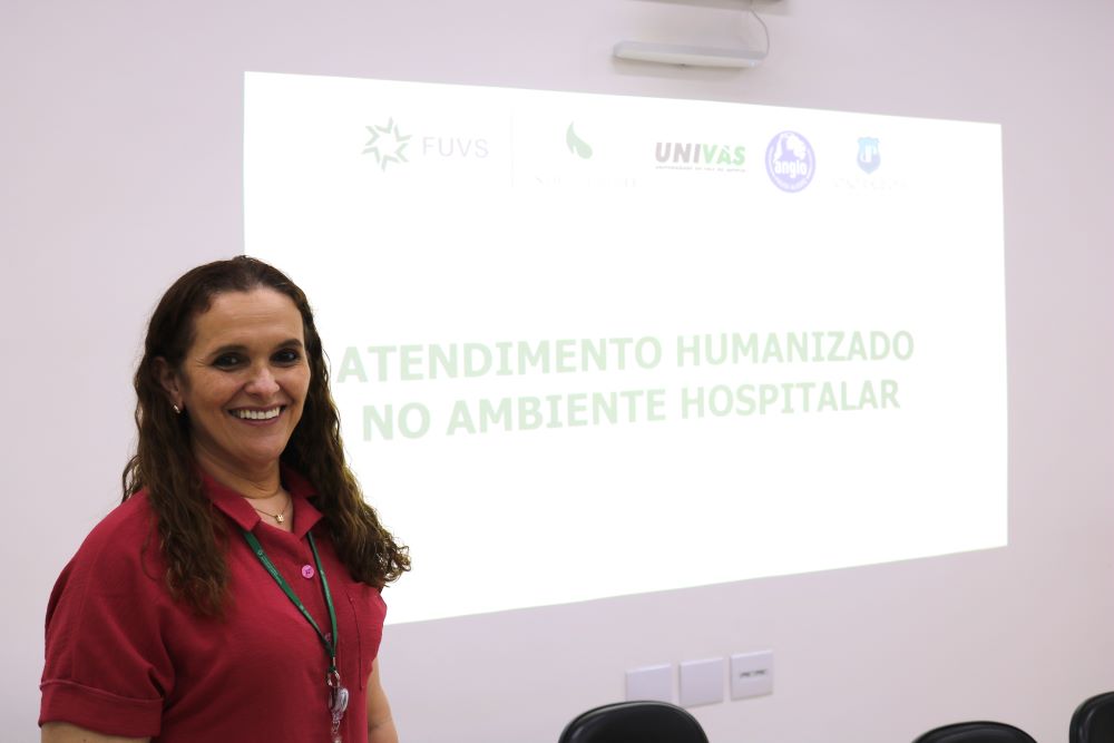 O treinamento sobre atendimento humanizado foi ministrado pela gerente de Recursos Humanos da Fundação de Ensino Superior do Vale do Sapucaí (FUVS), Benigna Terezinha Maia Santiago.