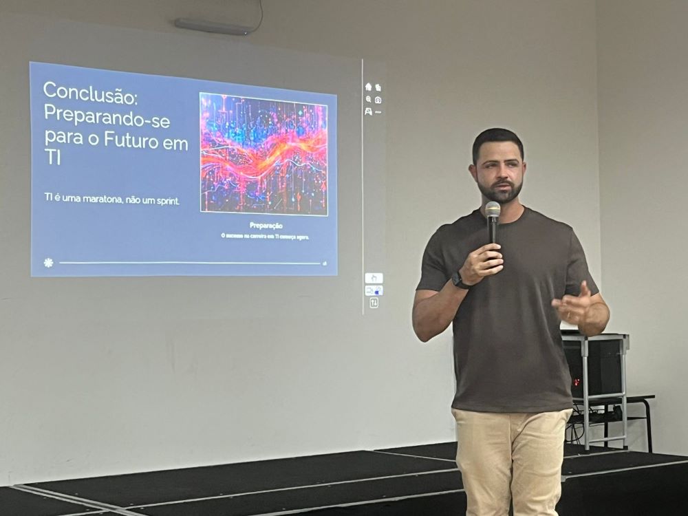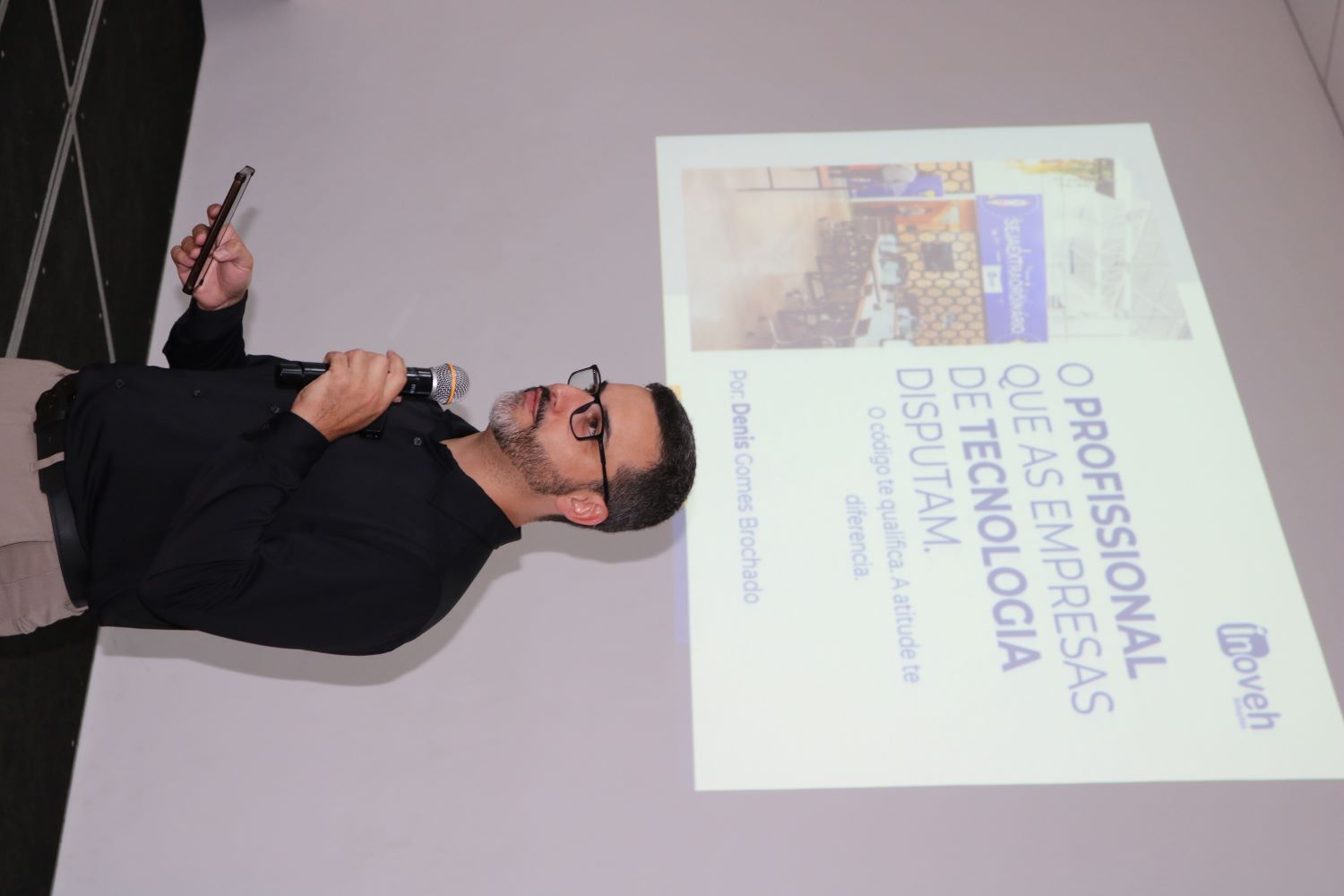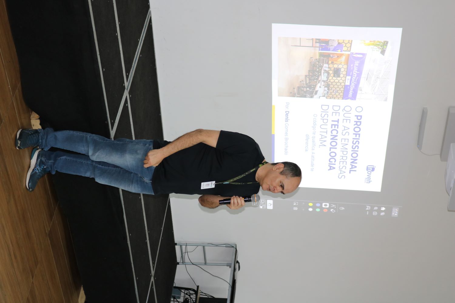 Denis destacou a importância da atualização contínua, ressaltando que a área de tecnologia está em constante e rápida transformação. Além disso, reforçou que a especialização em um segmento específico é fundamental para que o profissional consiga se destacar no mercado de trabalho atual, altamente competitivo.