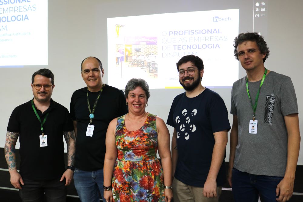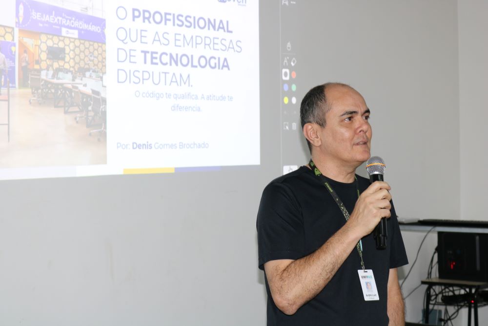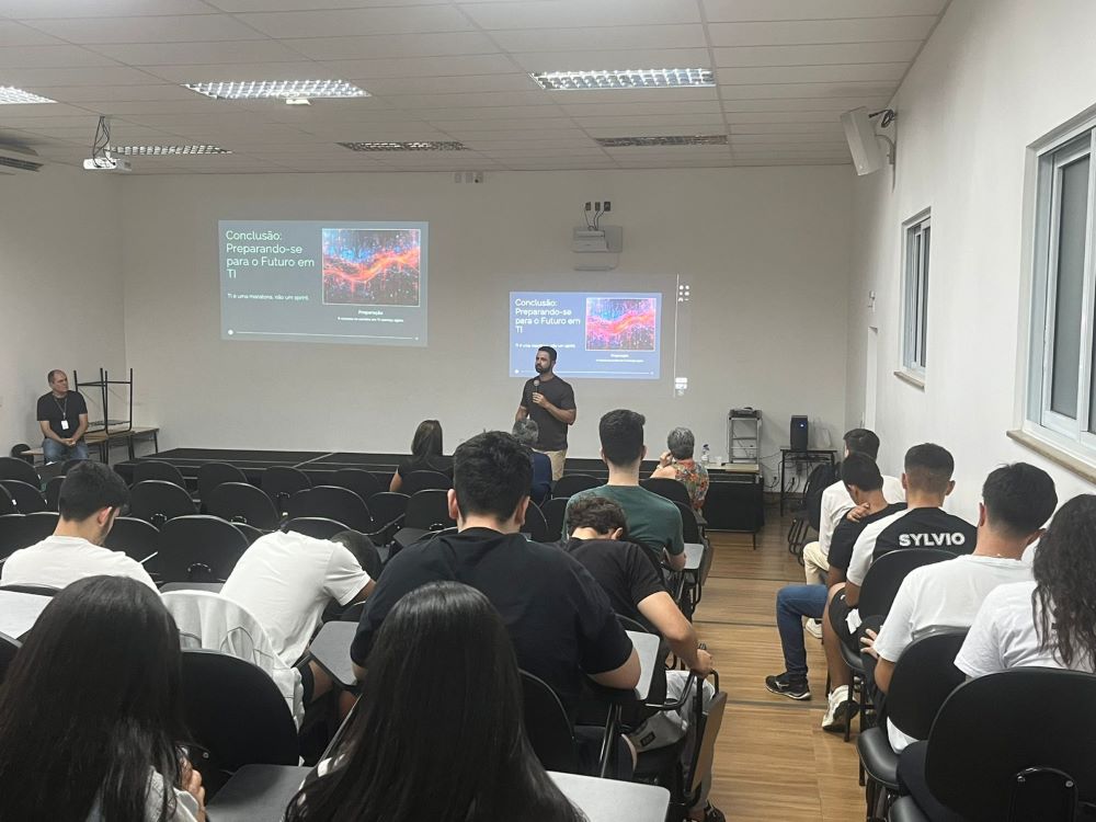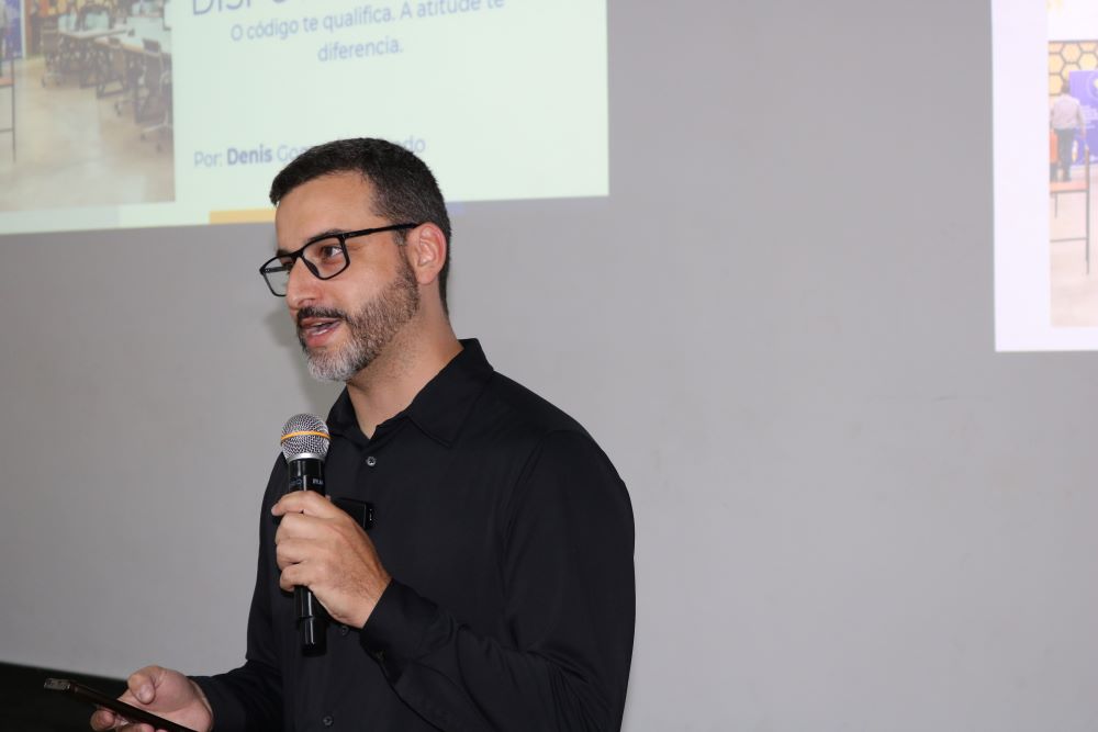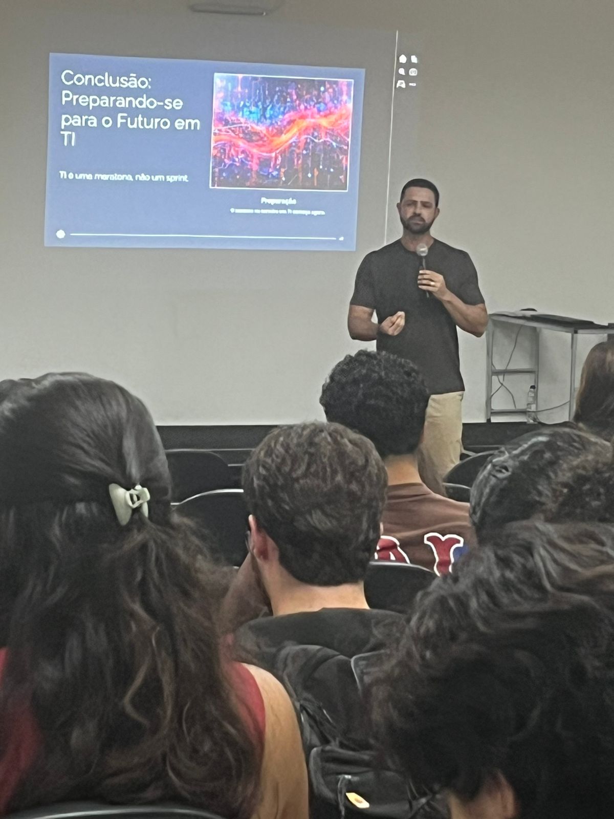 Denis destacou a importância da atualização contínua, ressaltando que a área de tecnologia está em constante e rápida transformação. Além disso, reforçou que a especialização em um segmento específico é fundamental para que o profissional consiga se destacar no mercado de trabalho atual, altamente competitivo.