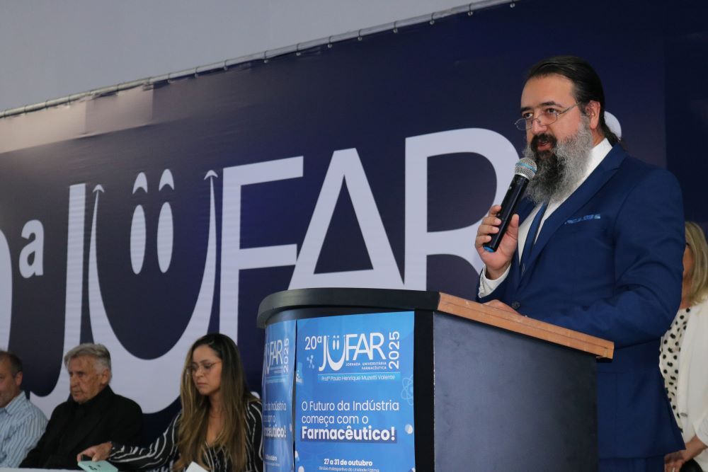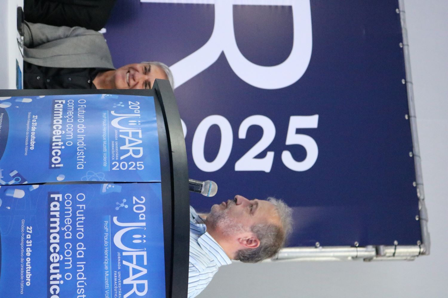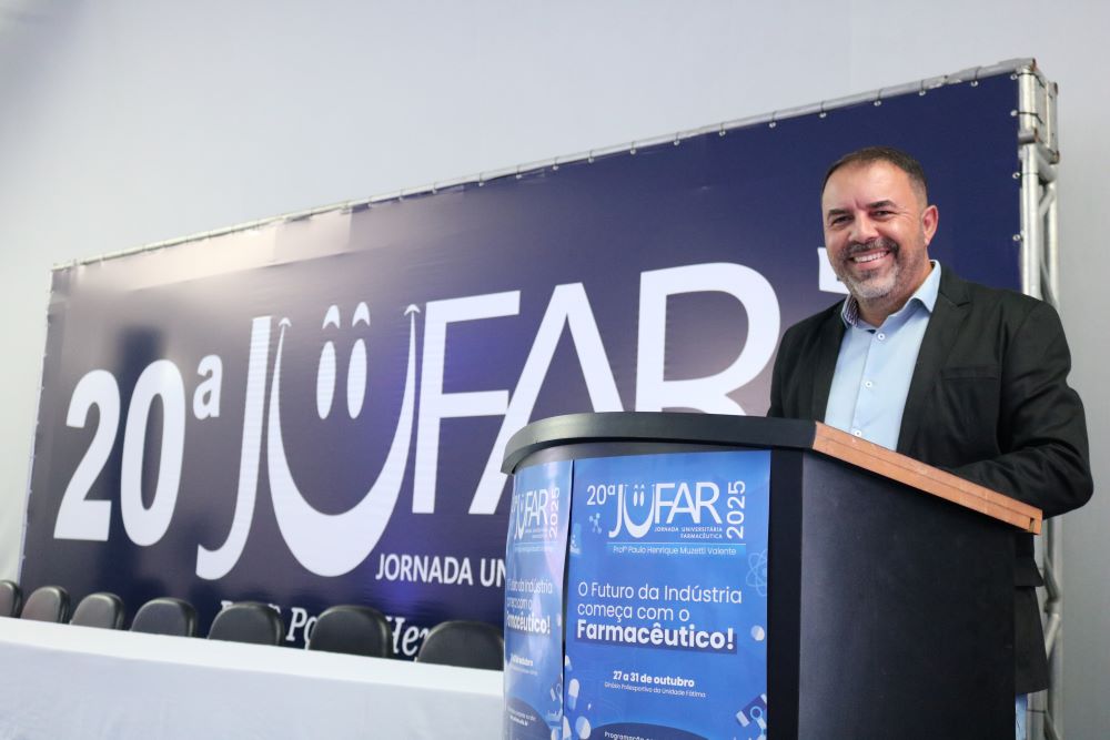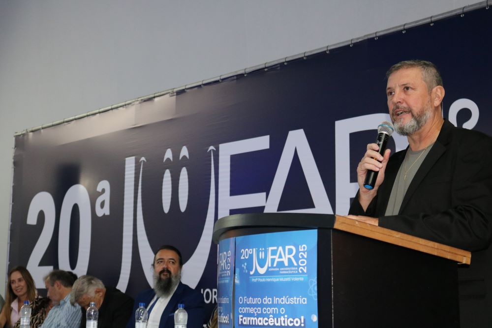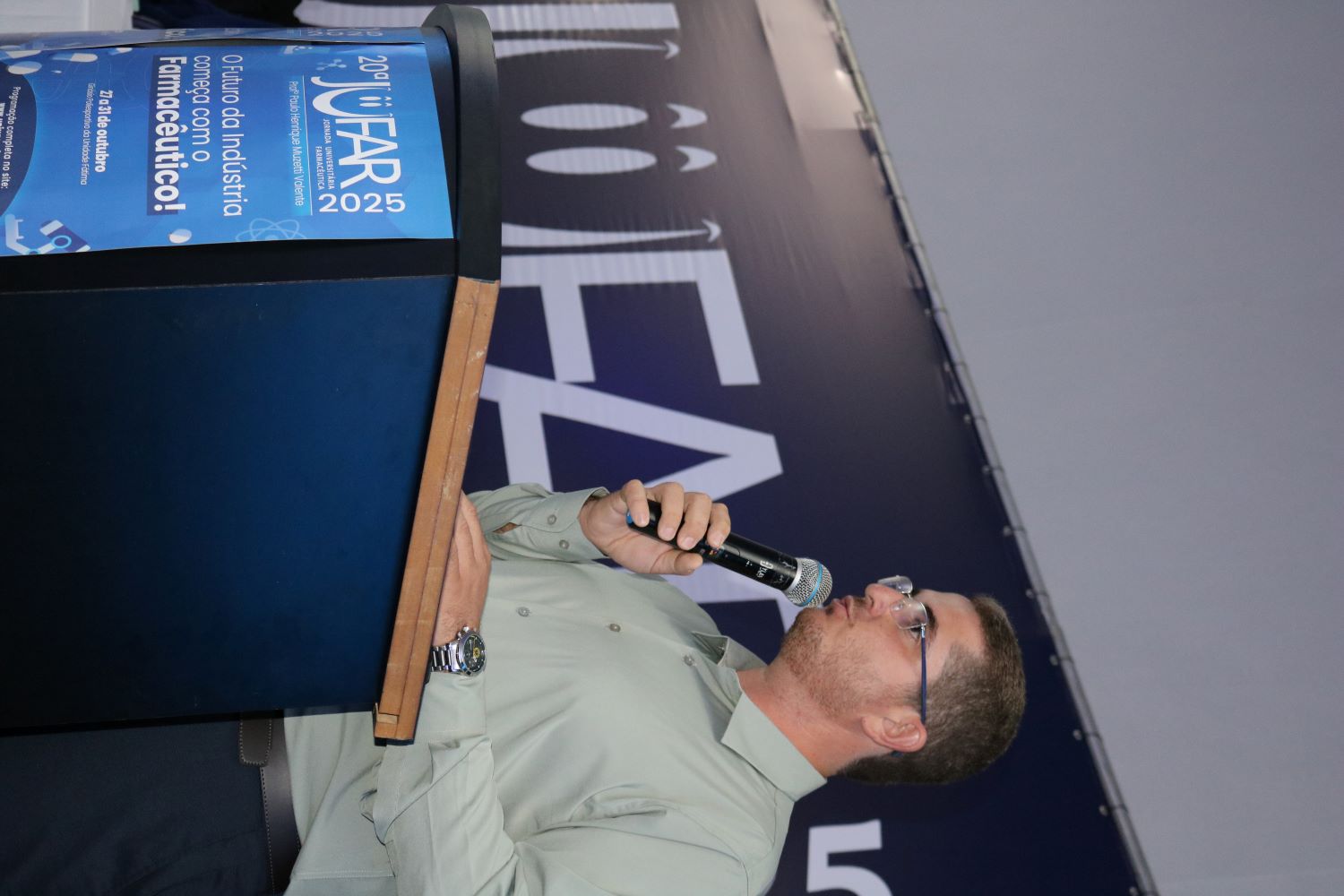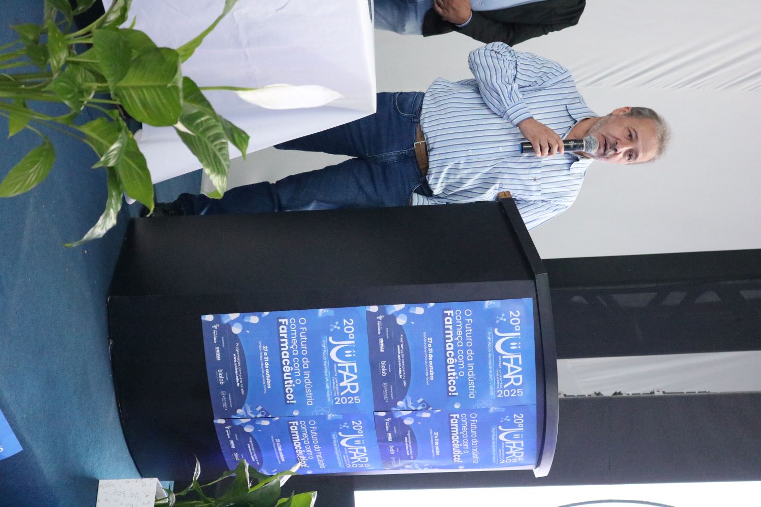 O tema geral do evento, que vai de 27 a 31 de outubro, trata do “Futuro da indústria começa com o farmacêutico”. O Deputado Federal, Rafael Simões, um dos mais assíduos participantes da Jufar nesses 20 de anos de realização, falou sobre a importância do curso de Farmácia da Univás. “Na indústria farmacêutica, o maior cliente é o Sistema Único de Saúde e nós precisamos organizar para que o SUS tenha recursos necessários para atender o nosso povo, e nós sabemos que as novas tecnologias estão chegando, e essas tecnologias têm custo alto. Nós precisamos de pesquisa e de desenvolvimento, e as universidades têm papel fundamental nesse trabalho, e é por isso que nós estamos conversando com o Fernando da União Química, com o Paulo da Biolab, com o João Adib da CIMED, para que eles venham com o programa de pesquisa e desenvolvimento para dentro da universidade. Que abra aqui um novo campo para vocês. Não é só vocês irem trabalhar na indústria, é trabalhar na pesquisa, trabalhar no desenvolvimento de novos e eficientes medicamentos”, afirmou Rafael Simões.