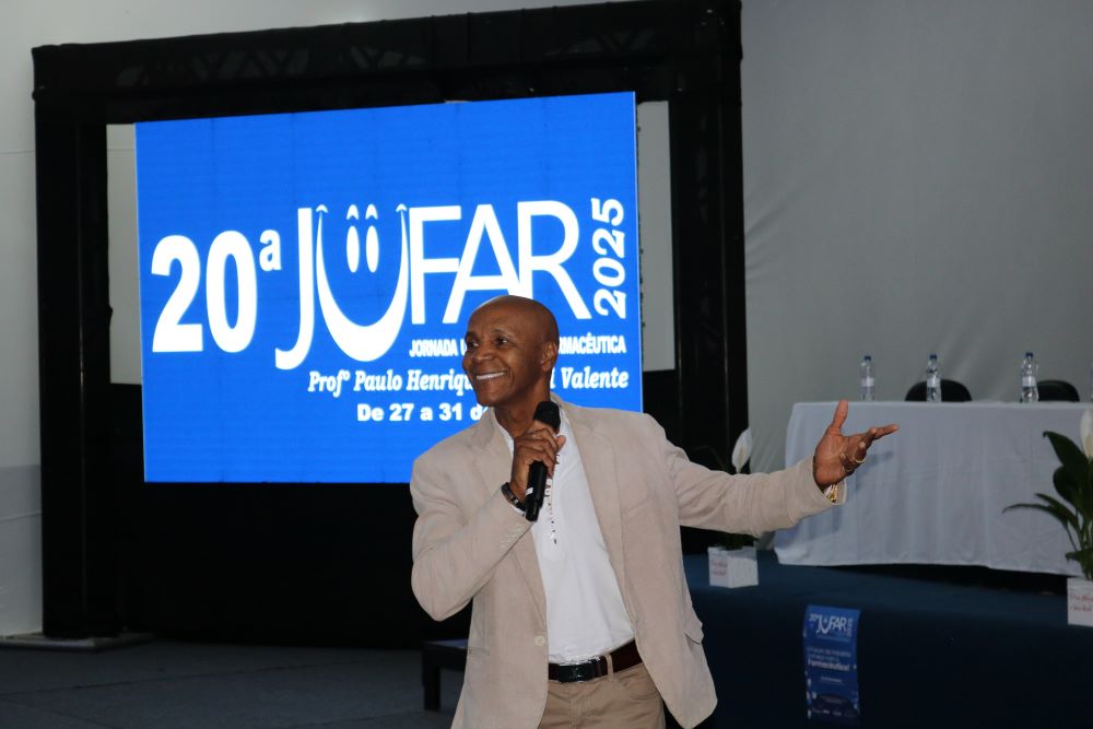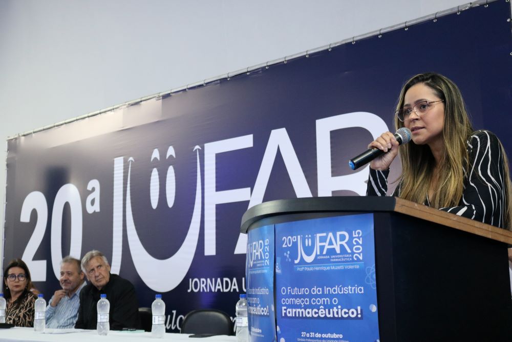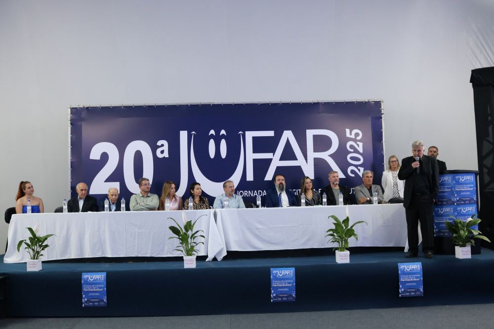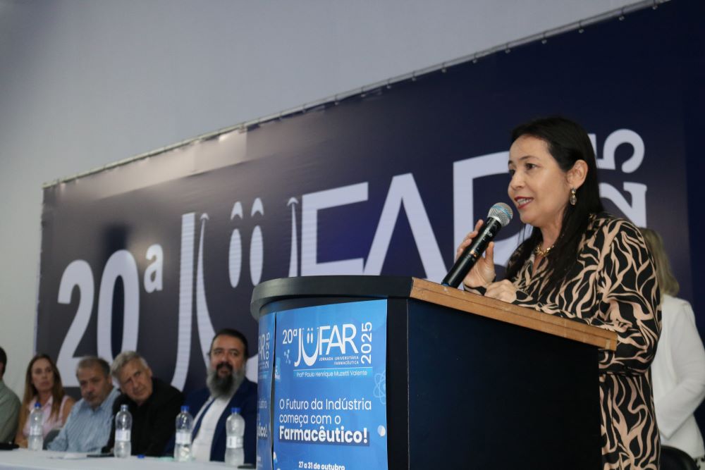 “Nesta jornada somos convidados a refletir não apenas sobre um evento acadêmico que chega à sua vigésima e brilhante edição, mas sobre uma história de construção coletiva. Cada jornada realizada até aqui representa a soma de esforços os quais convergem para o professor Pythagoras e para a professora Ana. A Jufar é, portanto, mais do que um encontro anual. É uma expressão da vitalidade intelectual e do compromisso social. Celebramos o amadurecimento de um projeto acadêmico consistente e, ao mesmo tempo, reafirmamos o compromisso com o futuro da profissão farmacêutica, um futuro que se desenha a partir da ciência, da ética e da inovação. Que os próximos dias sejam de intenso aprendizado, partia e inspiração” - Pró-reitora de Graduação e Pós-graduação, Joelma Pereira de Faria Nogueira.