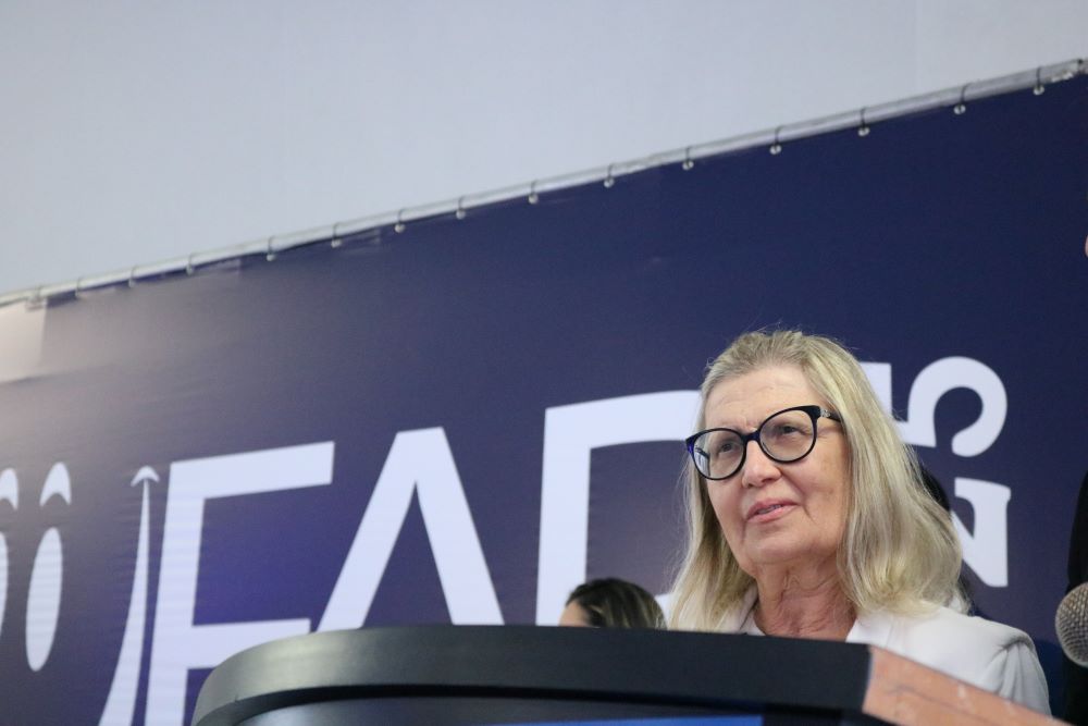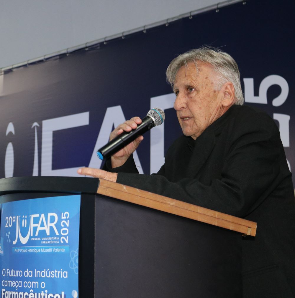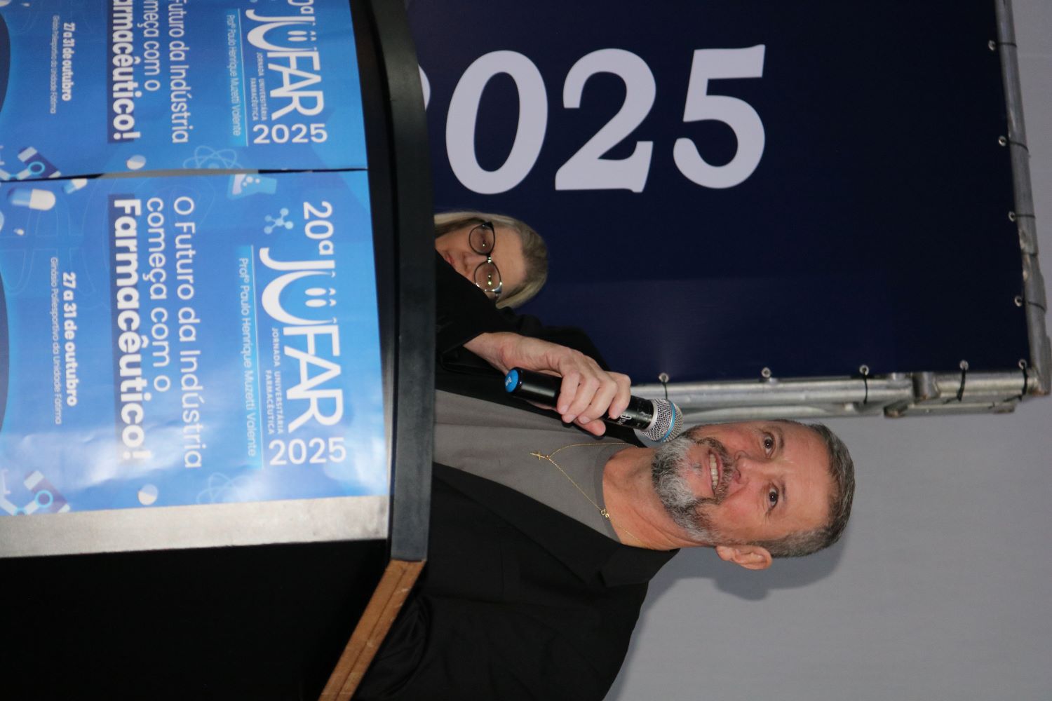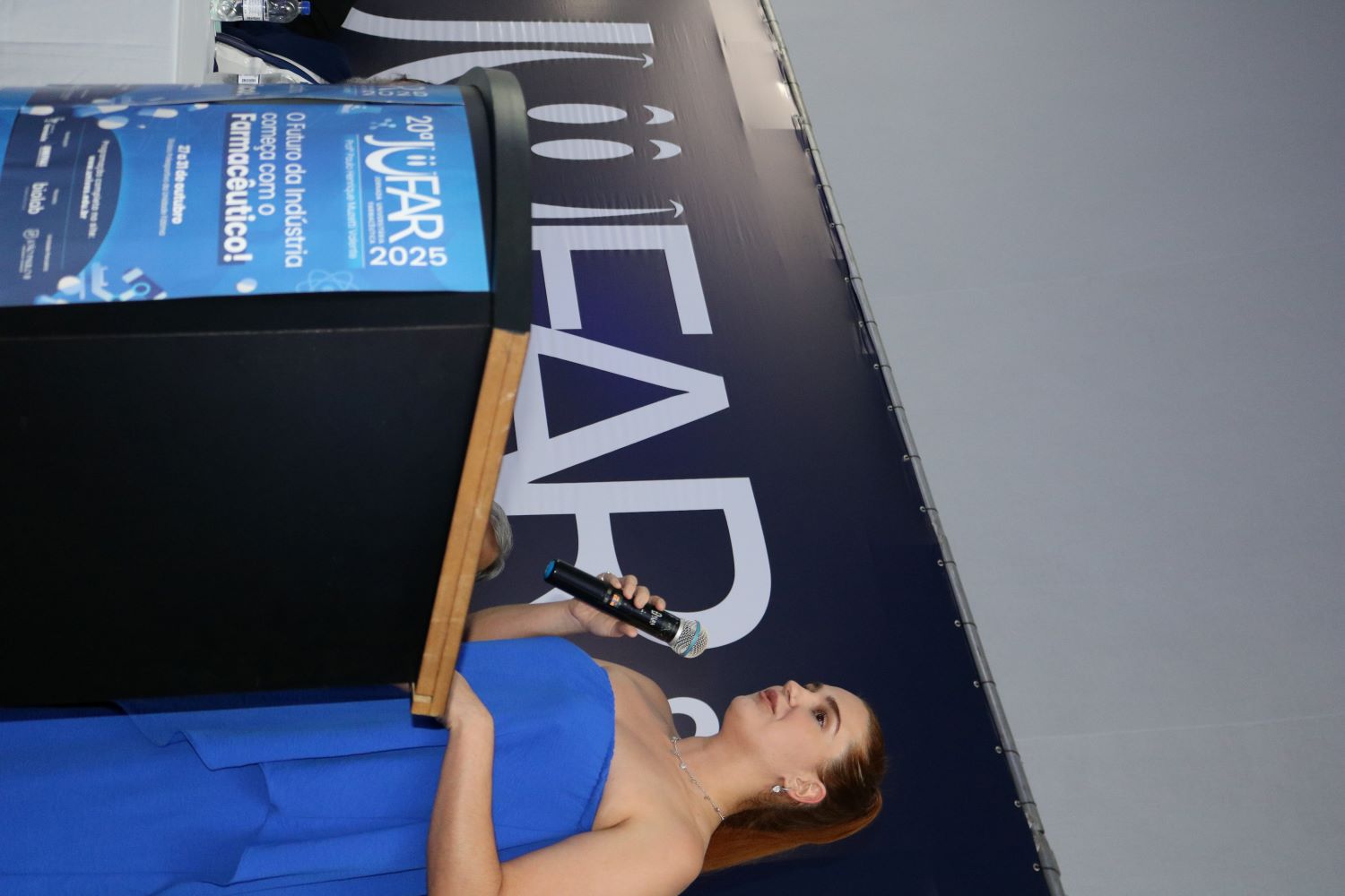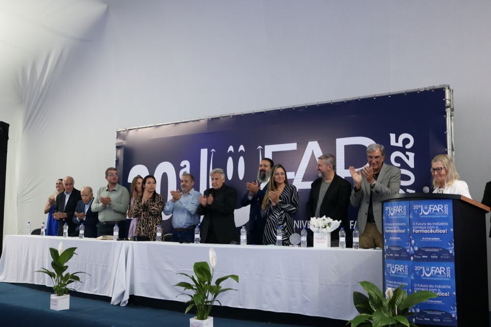 A cerimonialista e professora Ana Lúcia Bertoncin (“O coração da JUFAR”) falou da alegria de celebrar a 20º Jornada Farmacêutica. “Vinte edições que contam uma história de aprendizado, de dedicação e de amor à profissão. O tema deste ano traduz o espírito de quem acredita na ciência como caminho de transformação e na ética como base de cada conquista. A indústria farmacêutica tem papel essencial nessa caminhada. É nela que o conhecimento técnico encontra a prática, que a pesquisa se transforma em produto e que o cuidado com a saúde ganha forma e alcance. A presença do farmacêutico na indústria representa o compromisso com a qualidade, a inovação e sobretudo, com a vida. É um espaço de desafios e descobertas, onde cada decisão reflete responsabilidade e paixão pelo que fazemos”, refletiu.