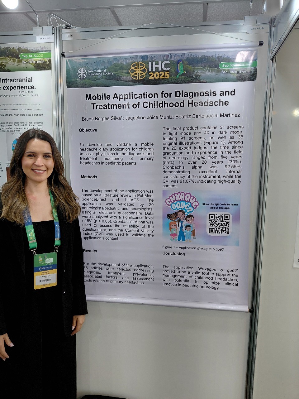 A egressa do Programa de Pós-Graduação Profissional em Ciências Aplicadas à Saúde (PPGPCAS) da Univás, Bruna Borges Silva, apresentou os resultados de sua pesquisa no 22nd International Headache Congress – IHC, realizado em conjunto com o Congresso Nacional de Cefaleia, entre os dias 10 e 13 de setembro de 2025, em São Paulo (SP). O evento, um dos mais relevantes da área, teve como tema central "Headache Care for All: Embracing the Challenge".