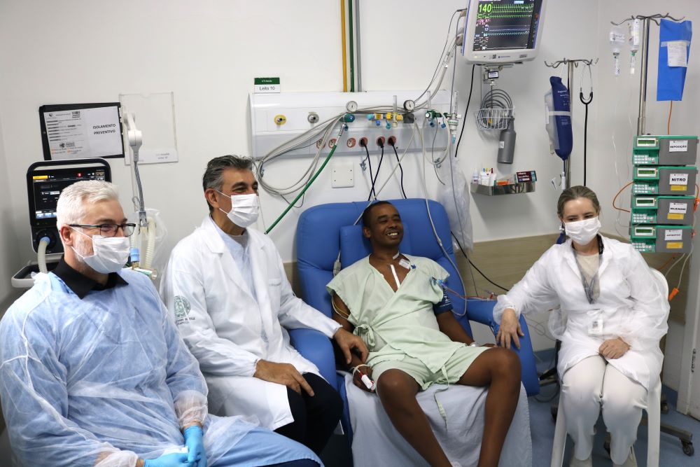 Edmilson, que adora fazer queijo e é flamenguista, não vê a hora de voltar para casa depois da recuperação pós-operatória. “Participar desse momento especial é algo que a gente sonha, desde criança. É uma honra participar dessa recuperação de saúde de uma pessoa que ficou seis meses internada. Ele tem tanta coisa pra fazer ainda, tem tantos planos. Isso aí é uma das maiores honras para profissionais envolvidos nos cuidados de saúde. É uma honra poder participar dessa equipe maravilhosa do Dr. Alexandre que nos proporcionou participar desse momento. A nossa equipe, graças a Deus, está muito empenhada, dedicada, com os corações batendo junto com o Edmilson”, declara o Dr. Mário Lúcio Marques Leal, coordenador do Serviço de Terapia Intensiva.