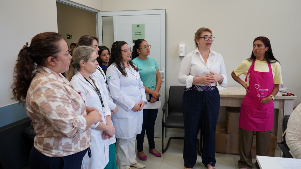 Com a participação da Associação Brasileira da Indústria de Higiene Pessoal, Perfumaria e Cosméticos (ABIHPEC), o Hospital Oncológico Samuel Libânio realizou uma atividade especial chamada de oficina de automaquiagem para seus pacientes nesta terça-feira, dia 4 de novembro. “Hoje é um dia muito importante, pois trazemos um pouquinho de autoestima, de autocuidado para essas pessoas que tanto precisam. Por trás dos pacientes oncológicos tem uma história, tem esperança, tem fé, então trazemos um pouquinho desse acolhimento para essas pessoas. Isso é muito importante pois o principal foco do Complexo Hospitalar Samuel Libânio é trazer qualidade de atendimento e esse acolhimento sempre”, disse o diretor técnico do CHSL, Dr. Saulo Gonçalves Lamas.