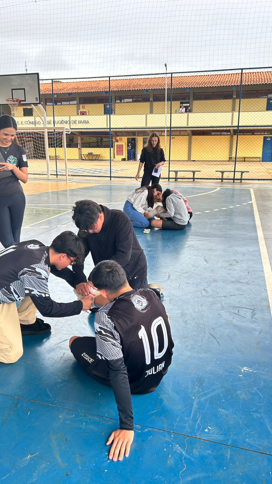 O objetivo principal da ação foi promover a consciência de jovens praticantes de esportes, sobre a importância de reconhecer e intervir imediatamente diante de acidentes esportivos a fim de evitar agravamento e piora do quadro de lesão. Inicialmente, foi realizado uma palestra breve abordando lesões comuns no voleibol e futebol e os protocolos de atendimento imediato.
