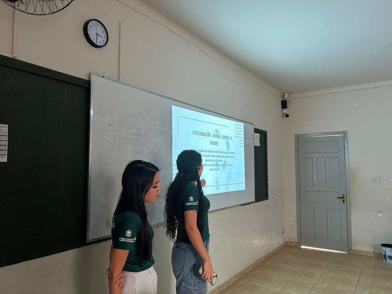 A ação teve início com uma apresentação teórica, na qual foram explicados conceitos básicos sobre como a prática regular de exercícios pode contribuir para o bem-estar físico, emocional e para o desempenho escolar. Em seguida, os estudantes participaram de duas atividades práticas, pensadas para reforçar e aplicar os conteúdos discutidos. Após as dinâmicas, foi promovido um momento de reflexão, destacando que a atividade física não deve ser vista apenas como um recurso voltado à estética, mas como um hábito essencial para o fortalecimento muscular e para a manutenção da saúde mental.