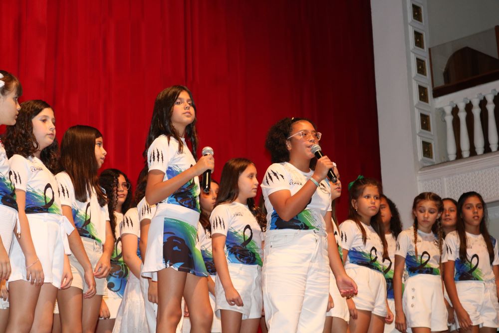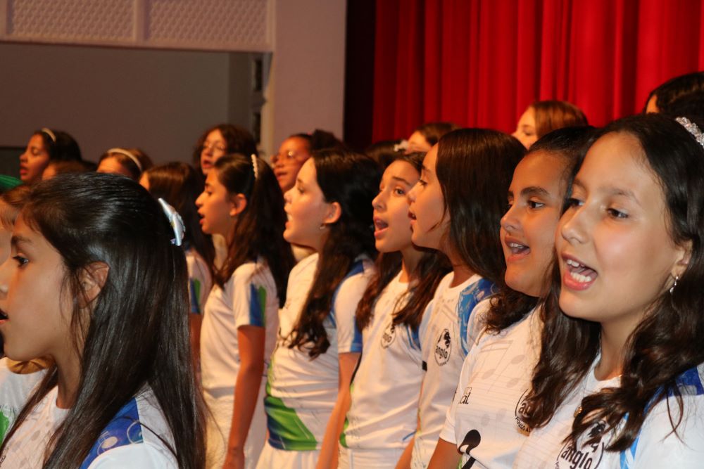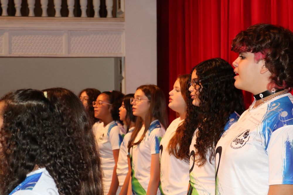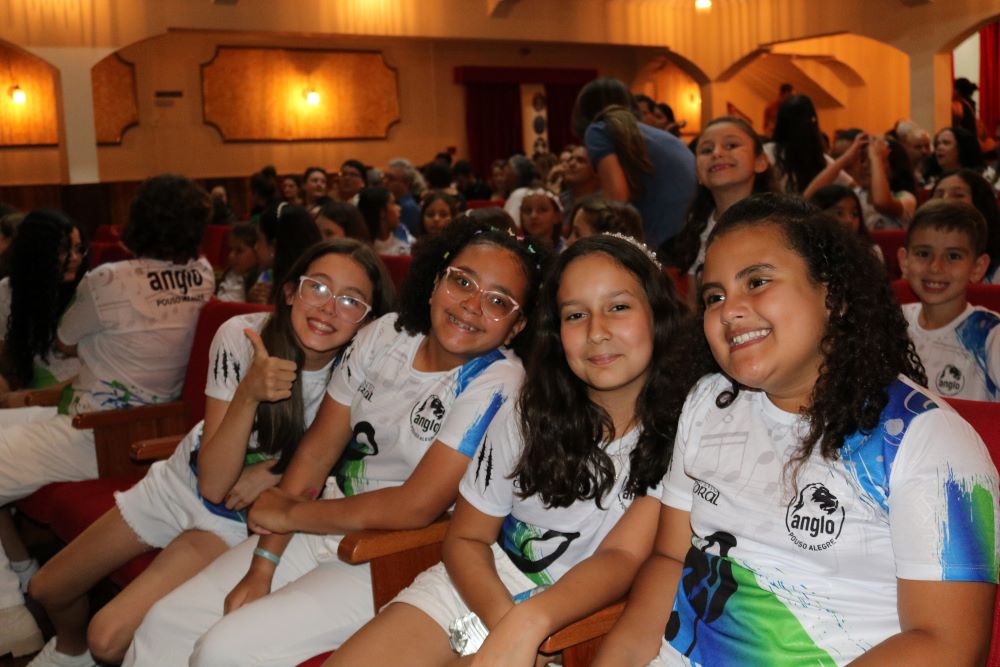 O coral EnCanto do Colégio Anglo Pouso Alegre se apresentou na noite desta quinta-feira, dia 11 de dezembro, no Teatro Municipal de Pouso Alegre e se destacou com a apresentação das canções “Aquarela”, do compositor Toquinho, “Ciranda em Cânone”, onde os alunos vivenciaram a forma musical cânone e aprenderam sobre a ciranda como Patrimônio Cultural do Brasil e a música “A Paz”, versão do grupo Roupa Nova para a canção “Heal The World”, de Michael Jackson.