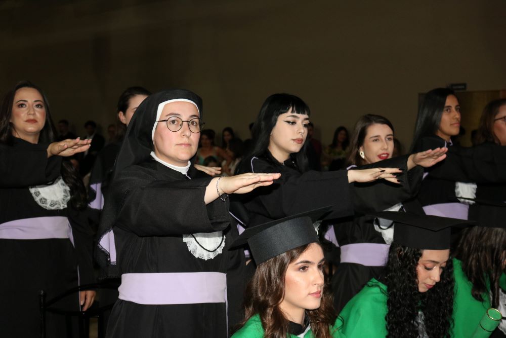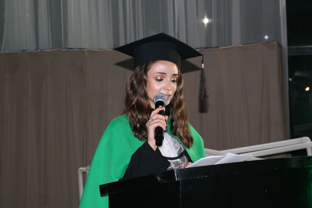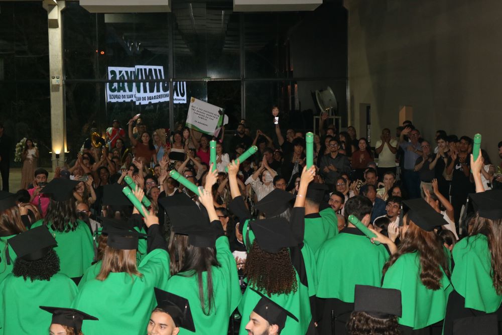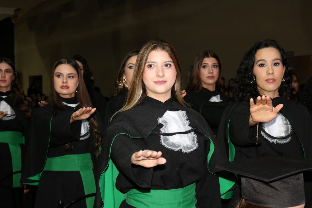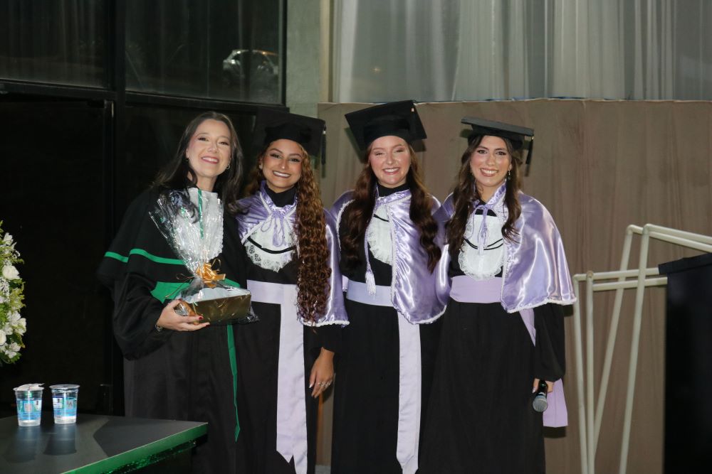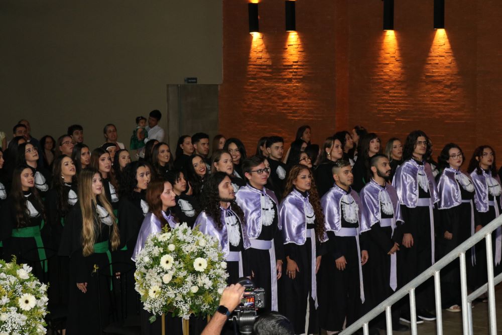 A formanda de Nutrição, Maria Vitória Fernandes da Silveira, proferiu o juramento em nome da turma e juntamente com os demais formandos. “Prometo que, ao exercer a profissão de nutricionista, o farei com dignidade e eficiência, valendo-me da ciência da nutrição, em benefício da saúde da pessoa, sem discriminação de qualquer natureza. Prometo, ainda, que serei fiel aos princípios da moral e da ética. Ao cumprir este juramento com dedicação, desejo ser merecedor dos louros que a profissão proporciona. Assim, prometo”.