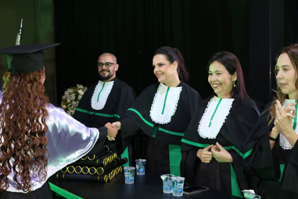 Em seguida, os formandos receberam os cumprimentos da mesa solene e posaram para as fotos individuais.