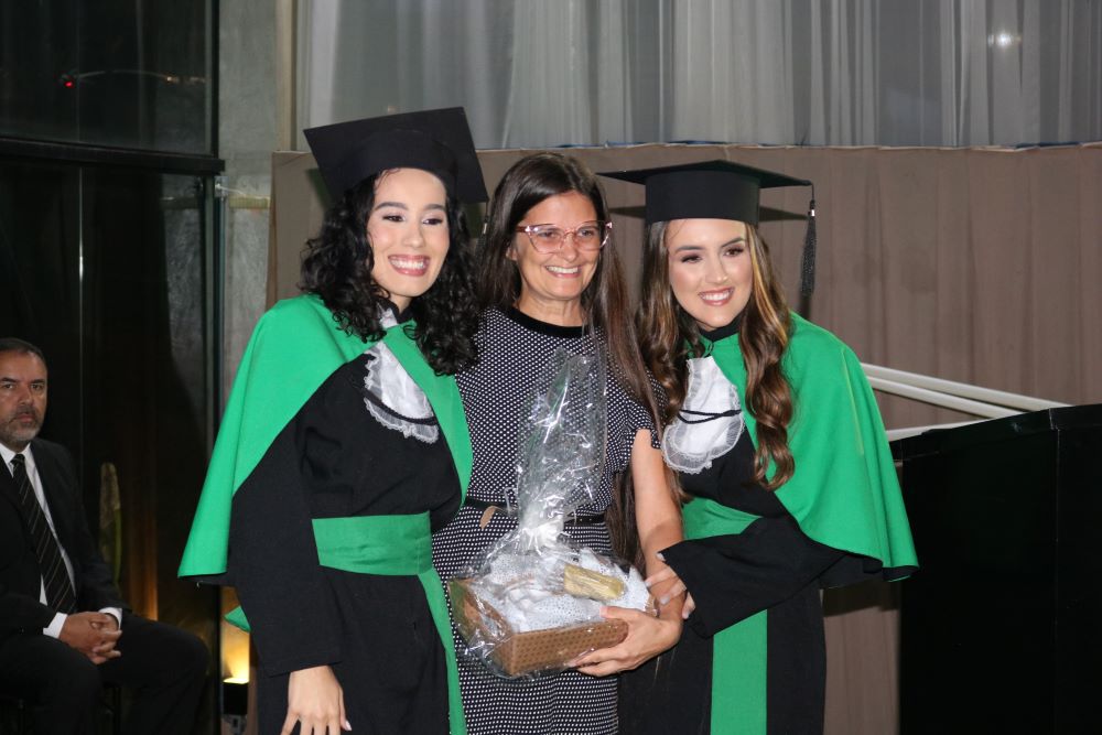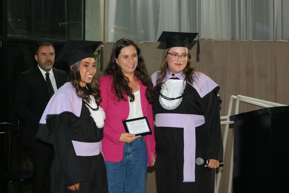 Aluna Karen Alexandra de Souza Gonçalves realizou entrega de placas ao paraninfo e à patronesse