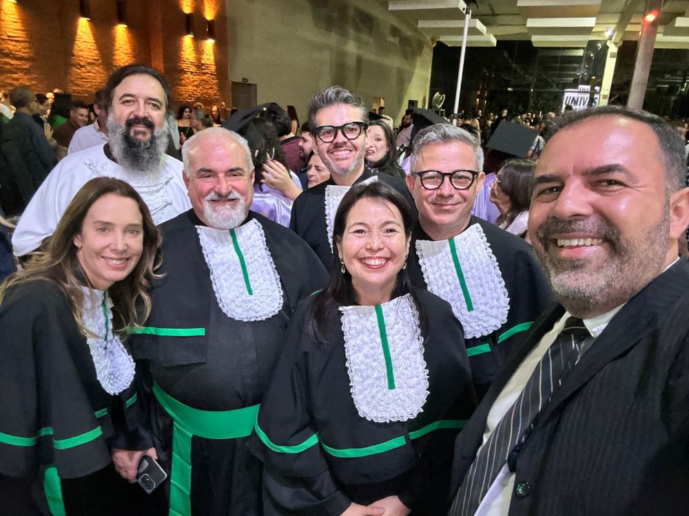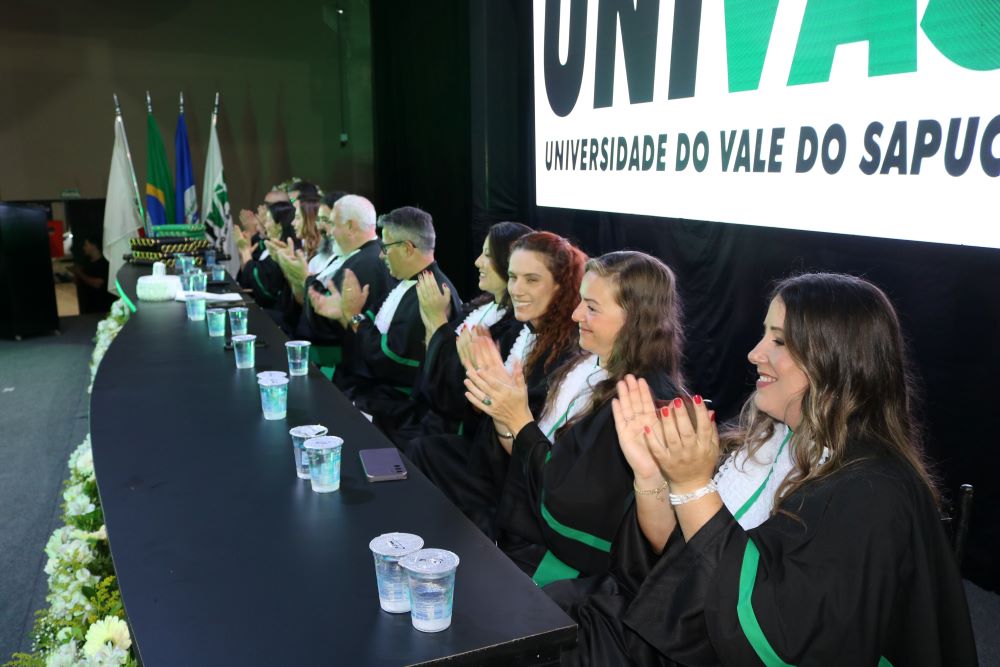 A mesa solene foi composta pelo reitor da Univás, José Dias da Silva Neto; o presidente da Fundação de Ensino Superior do Vale do Sapucaí; a pró-reitora de Graduação e Pós-Graduação da Univás, Joelma Pereira de Faria Nogueira; a pró-reitora de Extensão e Assuntos Comunitários e diretora da Unidade Central da Univás, Sílvia Mara Tasso; o diretor da Unidade Fátima da Univás, Jair Assis; a coordenadora do curso de Nutrição da Univás, Camila Blanco Guimarães, e a coordenadora dos cursos de Letras e Pedagogia da Univás, Letícia Rodrigues de Souza.