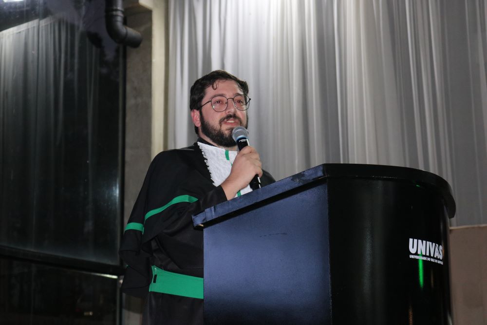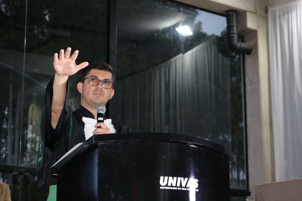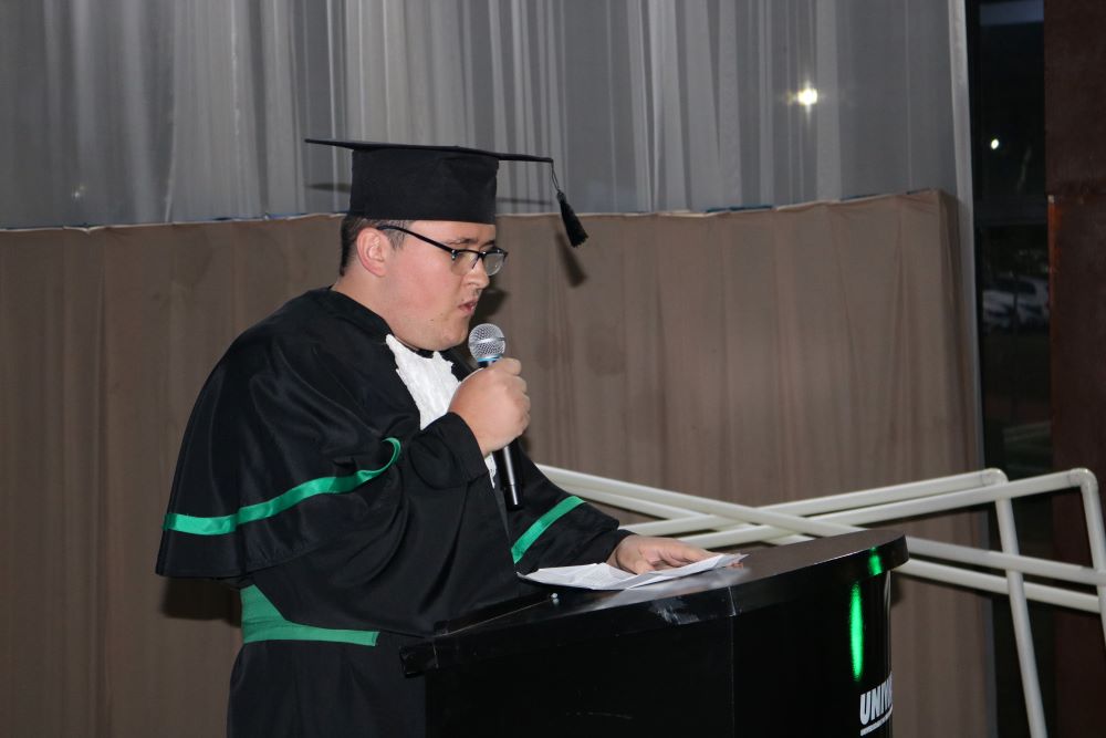 O orador da turma do curso de Sistemas de Informação da Univás, Samuel Henrique Siqueira de Paiva, discursou sobre a conquista agradecendo educadores e familiares.