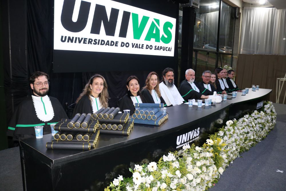 A mesa solene foi composta pelo reitor da Univás, José Dias da Silva Neto; o presidente da Fundação de Ensino Superior do Vale do Sapucaí; a pró-reitora de Graduação e Pós-Graduação da Univás, Joelma Pereira de Faria Nogueira; a pró-reitora de Extensão e Assuntos Comunitários e diretora da Unidade Central da Univás, Sílvia Mara Tasso; o diretor da Unidade Fátima da Univás, Jair Assis; a coordenadora do curso de Enfermagem da Univás, Jéssica de Aquino Pereira, e o coordenador do curso de Sistemas de Informação da Univás, André Luiz Martins de Oliveira.