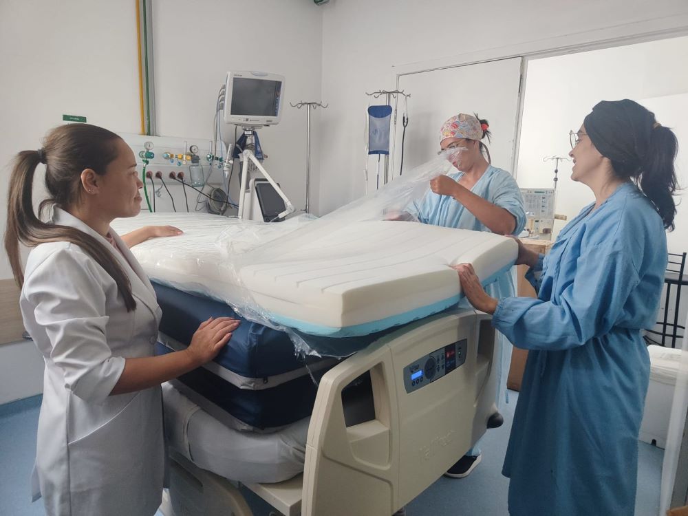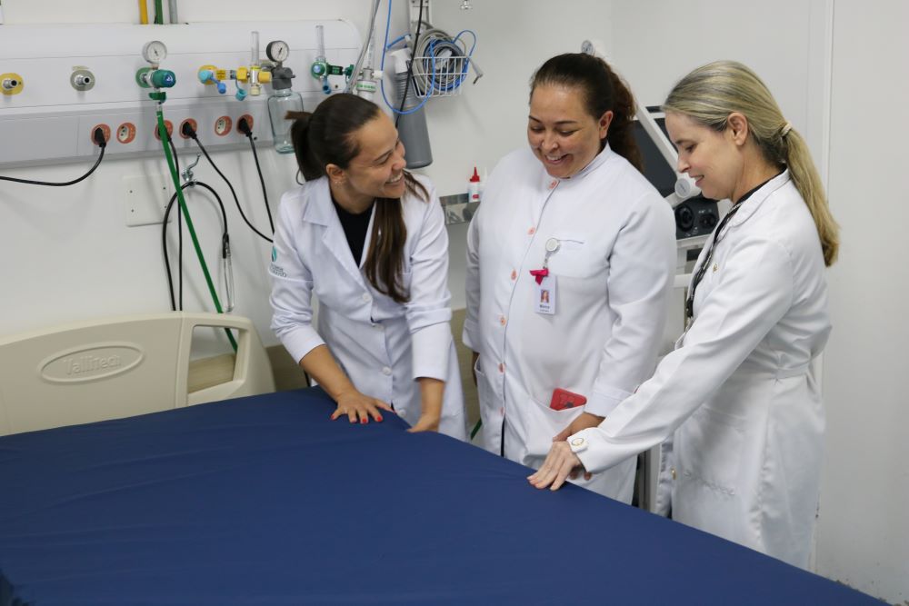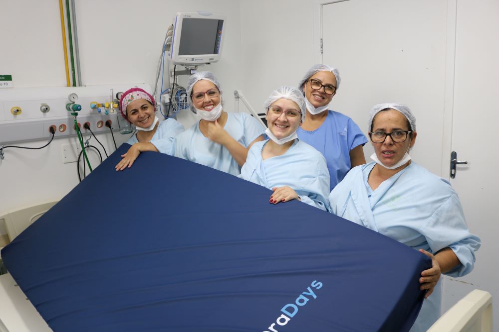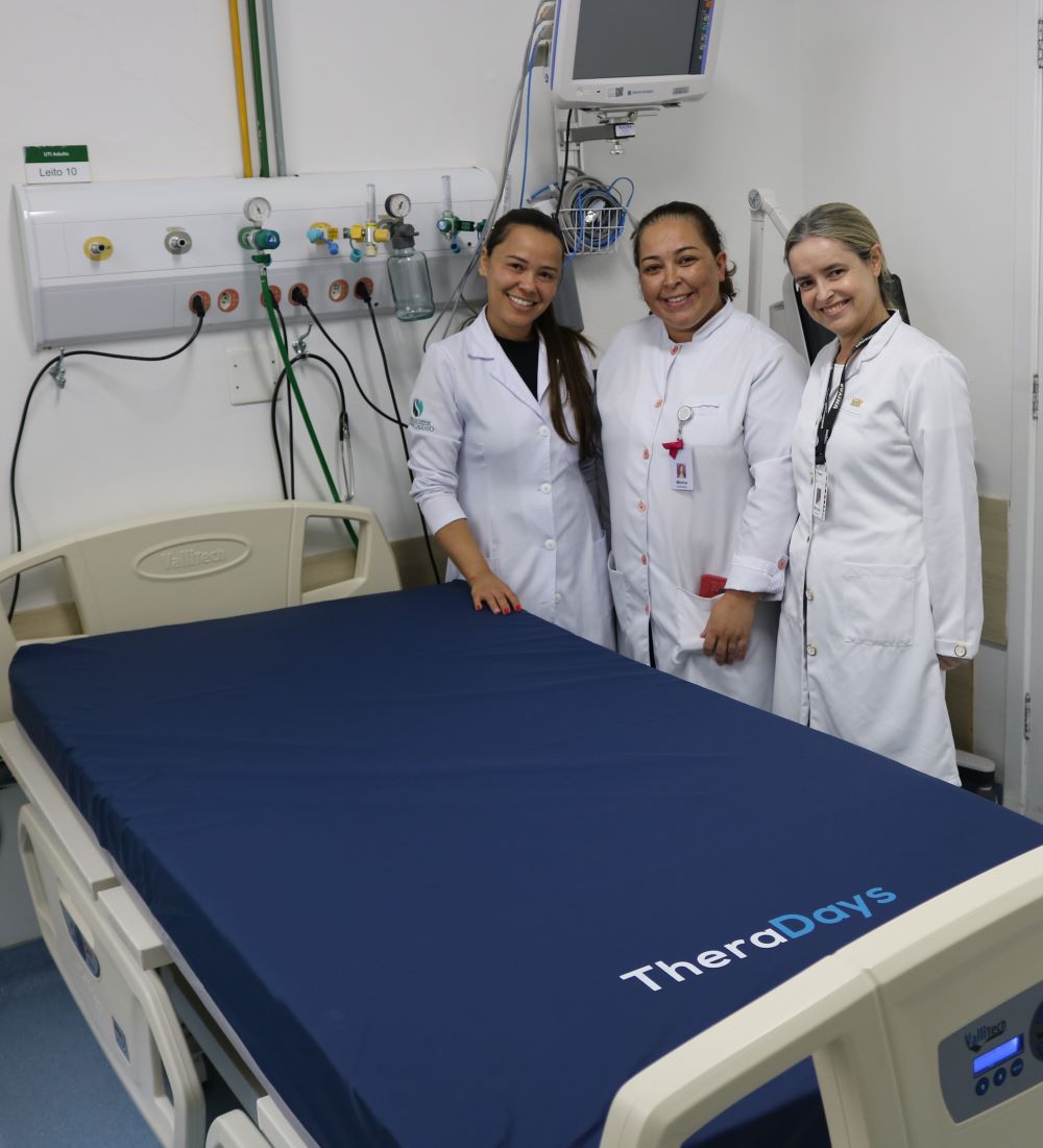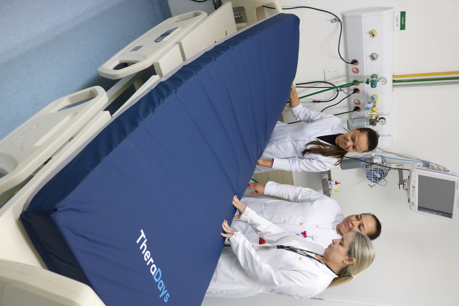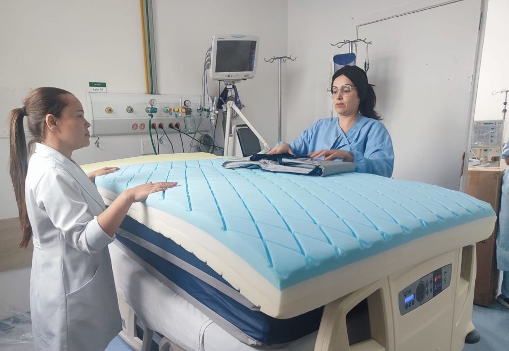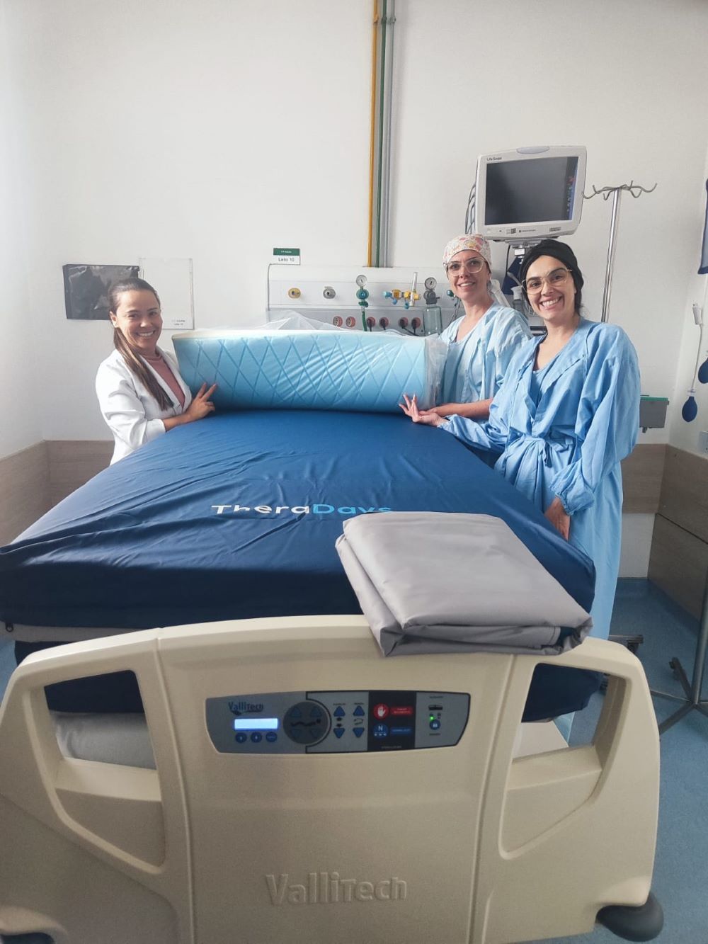 A enfermeira Poliana da Silva Ramos, conta que o colchão viscoelástico melhora também a mobilidade do paciente. “Então, ele ajuda até na parte da isquemia, da circulação do próprio paciente, diminui a parte de atrito da pele do paciente, que é a parte da sacra, onde tem as lesões de pressão. É mais um grande diferencial no cuidado com os pacientes aqui no Complexo Hospitalar Samuel Libânio, pois pelo alto custo não é todo hospital que possui esses colchões. É um investimento que traz um benefício enorme para nossos pacientes”, esclarece Poliana, contando que outros leitos das UTI’s também possuem esses colchões que fazem toda a diferença no cuidado com os pacientes.