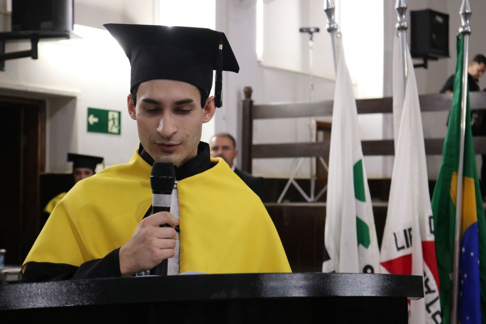 O orador da turma do curso de Farmácia da Univás, Lincoln Gabriel Bulgaro Silva, falou da conquista em nome dos formandos.