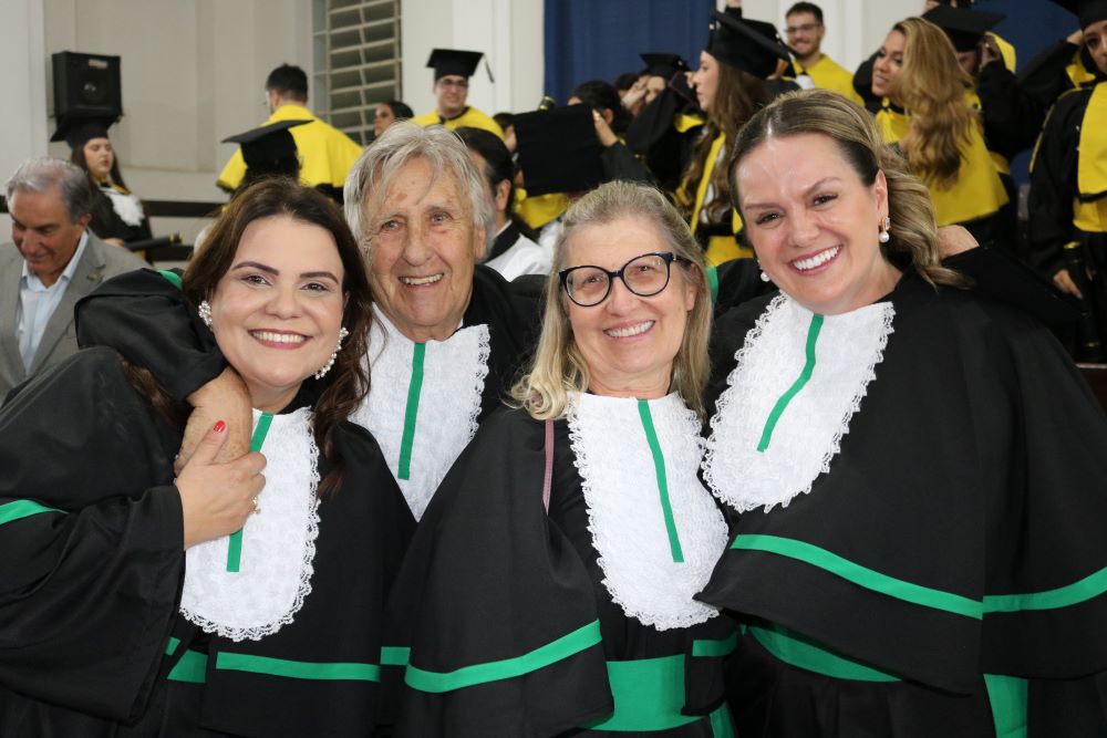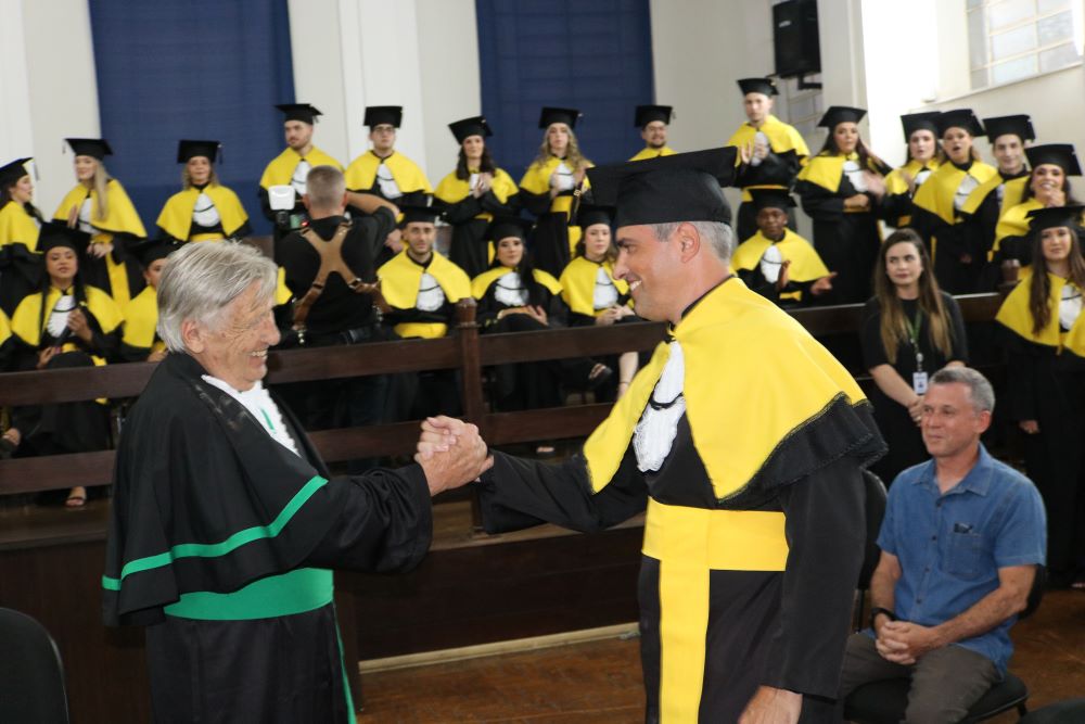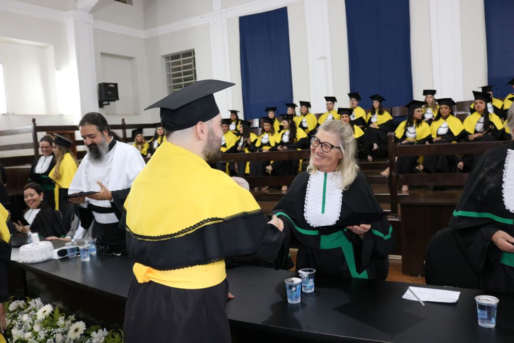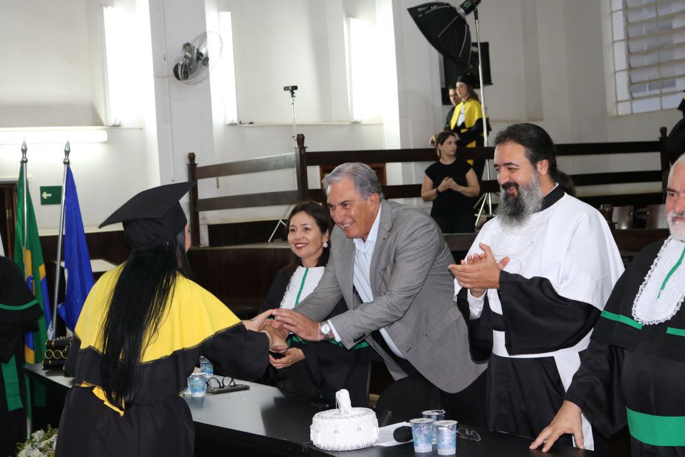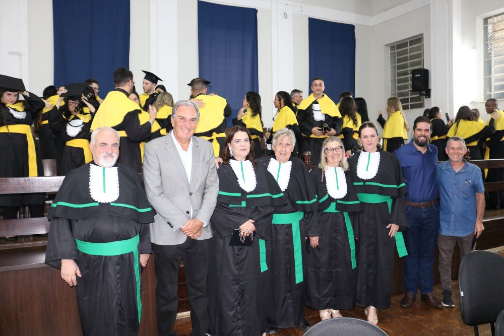 O evento de júbilo para os acadêmicos e familiares também ficou marcado com a despedida do criador do curso de Farmácia, Pythágoras de Alencar Olivoti, e da professora Ana Lúcia Francisco Bertoncin. “Meus colegas, vocês estão saindo para o mercado de trabalho. Como eu já disse, de momento vocês não vão ganhar 20 mil reais, mas trabalhem para isso. Valorize a sinceridade e a confiabilidade das pessoas pois elas terão uma importância enorme na sua jornada profissional. Vivemos em um tempo de muitas leis e pouca ética, vamos ser diferentes, vocês têm condições para isso, vocês têm exemplos para isso, sejam profissionais e excelentes seres humanos. Grande abraço”, disse Pythágoras.