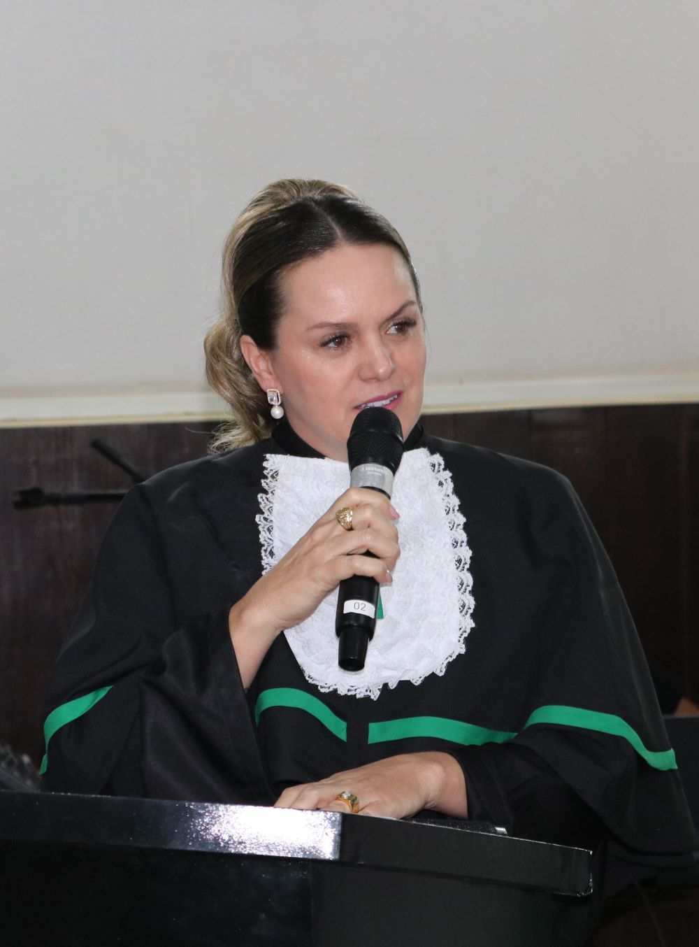 A professora Denize Augusta Barbosa Alves, paraninfa da Turma de Farmácia falou com carinho e gratidão aos alunos e familiares.