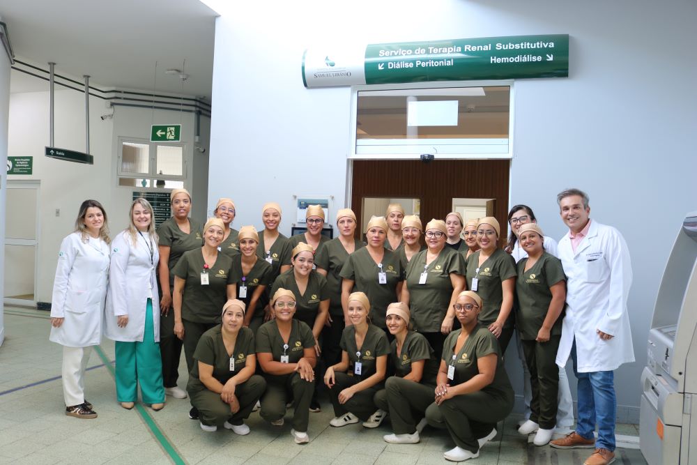 A equipe do Serviço de Hemodiálise do Complexo Hospitalar Samuel Libânio (CHSL) recebeu novos uniformes neste mês de janeiro. “Gostamos muito do uniforme, estamos recebendo elogios dos pacientes e também dos colegas de outro setor. O uniforme novo trouxe conforto e sentimento de pertencimento, identidade e orgulho em fazer parte deste time”, disse a enfermeira Luciana de Cássia Almeida, responsável técnica do setor.
