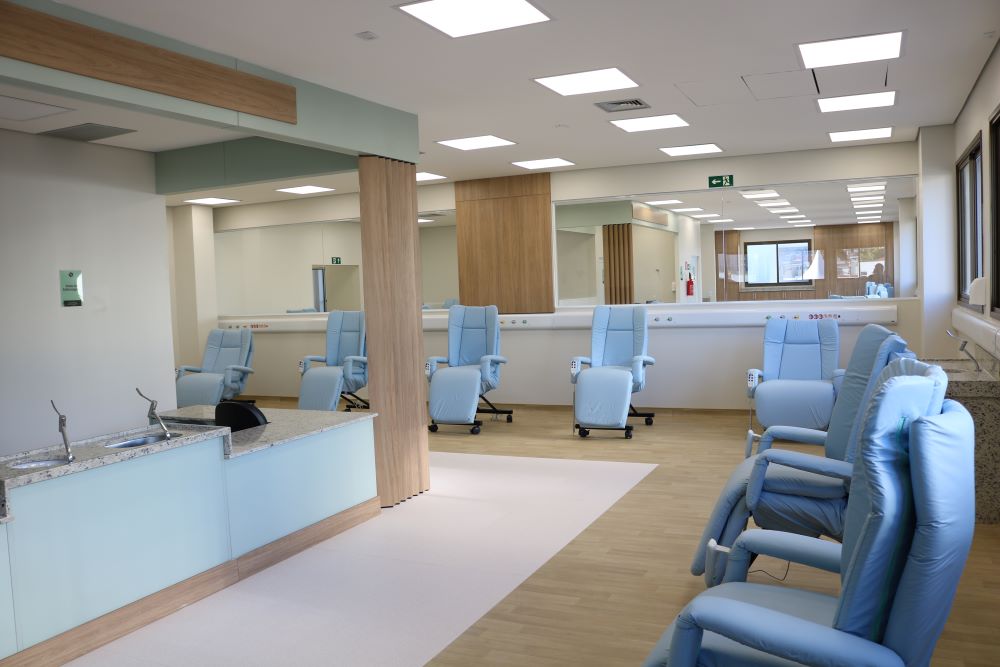 Já o 2º pavimento do Hospital Oncológico, inaugurado em junho de 2025, possui majoritariamente espaços para a quimioterapia dos pacientes, mas também conta com 10 consultórios multidisciplinares focados na oncologia.