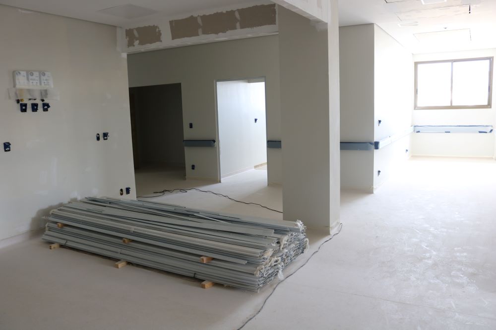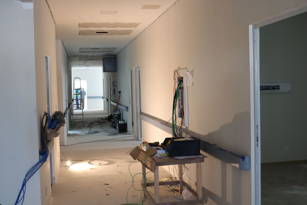 Segundo a engenheira civil, Aline Gomes, em dezembro, foi realizada a finalização do fechamento do forro, juntamente com o início das instalações do piso vinílico, réguas de gases medicinais e de racks de dados, além da pintura das paredes e forro. Agora em janeiro, no 3º pavimento, foi finalizado o assentamento de azulejos, começou a instalação de bancadas e divisórias de granito. Também começaram as instalações de portas e de louças como lavatórios e vasos sanitários.