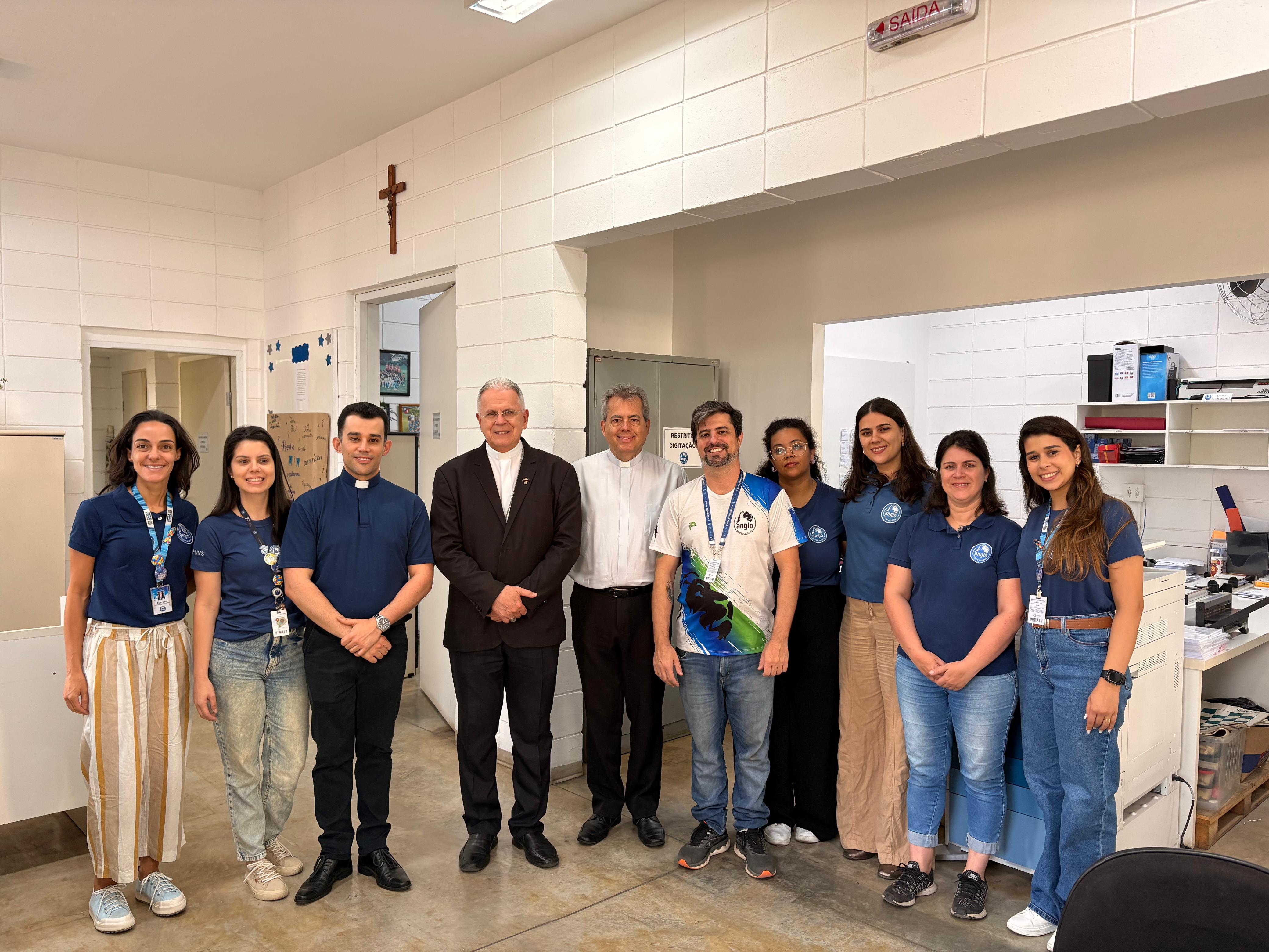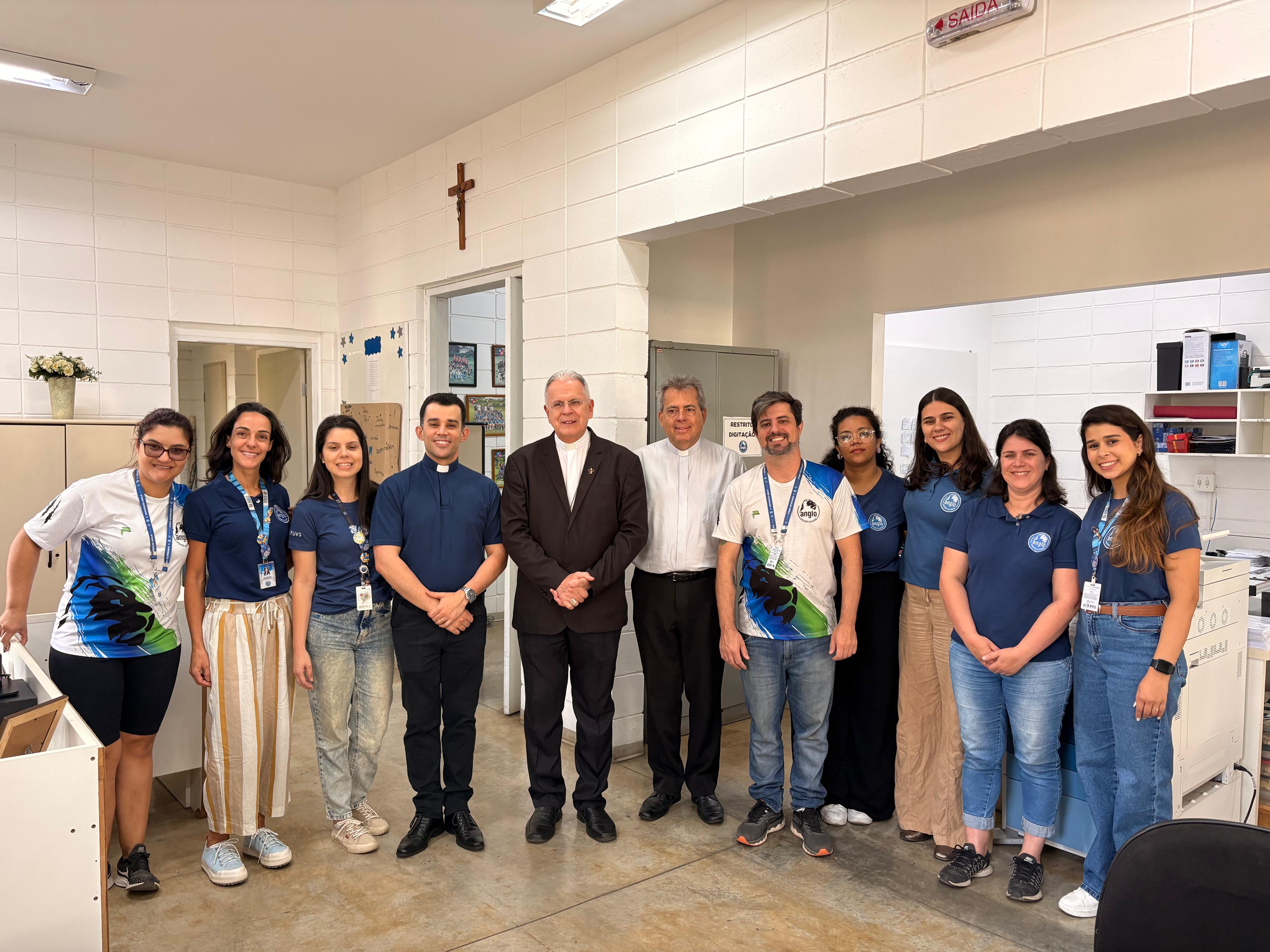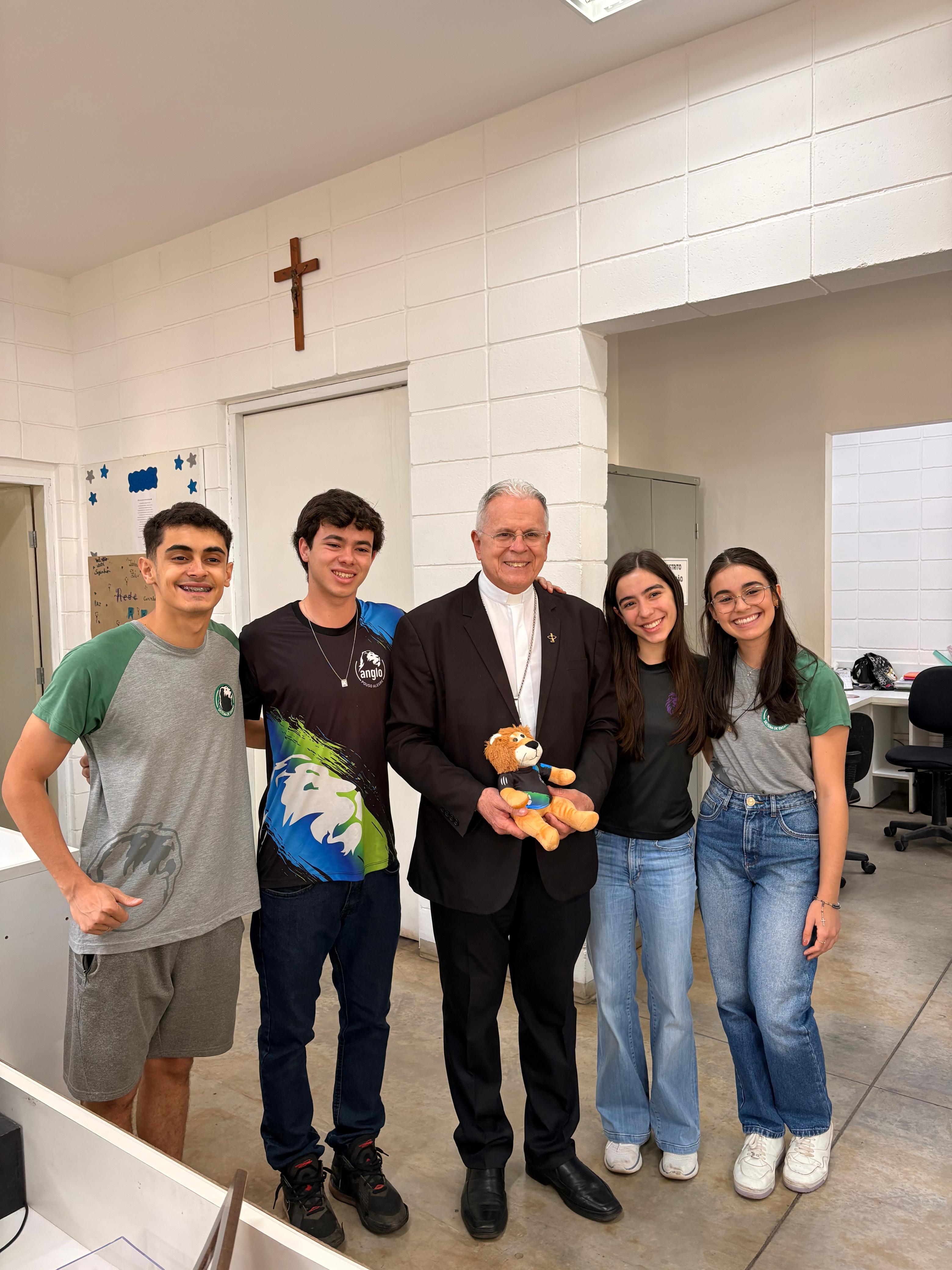 O arcebispo metropolitano de Pouso Alegre, Dom José Luiz Majella Delgado, visitou a Univás e o Colégio Anglo Pouso Alegre nesta semana onde trouxe uma bênção especial para alunos que fazem parte de grupos de oração nas duas instituições.