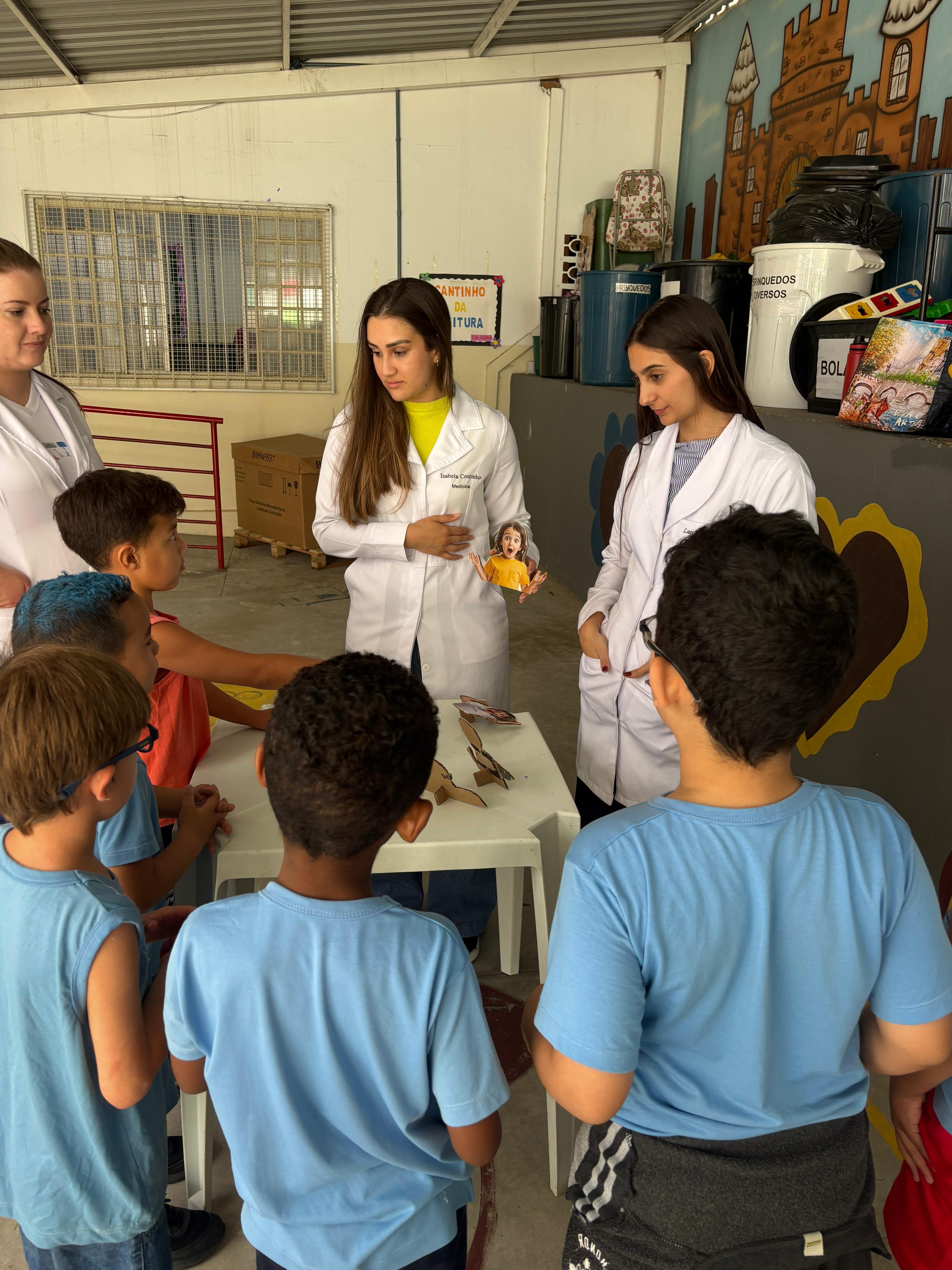 Alunos da Liga de Pediatria Univás (LAPED) realizaram a Oficina Pediátrica de Múltipla Conscientização realizou três atividades lúdicas e práticas com 40 crianças, na faixa etária de 5 a 6 anos, na tarde do dia 26 de setembro, no Ceim Recanto Feliz, no Bairro Belo Horizonte, em Pouso Alegre. As ações trabalharam os temas “Alimentação Saudável”, “Higiene das Mãos” e “Como lidar com as emoções”.