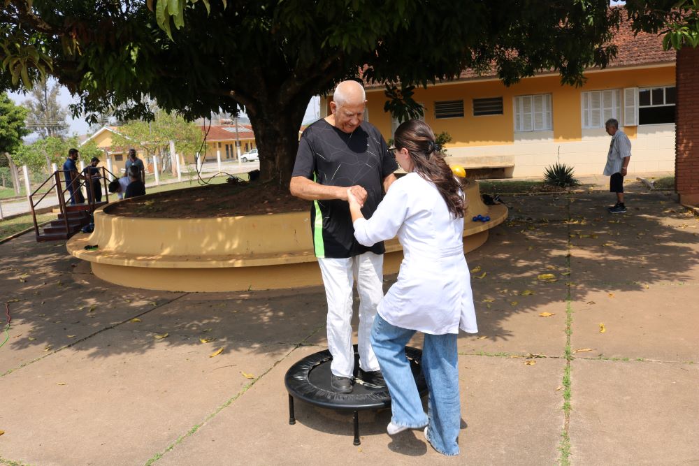 Conforme o coordenador do curso de Fisioterapia, Diego Openheimer, foi construído um novo serviço de fisioterapia com equipamentos novos e modernos para atender as demandas e trazer qualidade aos idosos assistidos no Lar Irmã Maria Augusta. O responsável pelas atividades de saúde, professor Jonas Isaac da Rosa, conta como são desenvolvidas em Borda da Mata. “Promovemos esse atendimento para fazer com que esses idosos se tornem cada vez mais funcionais, para que eles tenham uma independência e melhorem a qualidade de vida. São 10 acadêmicos de extensão e cinco de estágio desenvolvendo essa atividade aqui. Toda terça fazemos esses exercícios. Então, eles conseguem fazer atendimento e colocar em prática tudo que eles estão vendo dentro de sala de aula. Na fisioterapia, tem uma área específica para a saúde do idoso e aqui, nossos alunos são preparados para sua futura profissão na prática, sempre sob nossa supervisão”, conta Jonas.