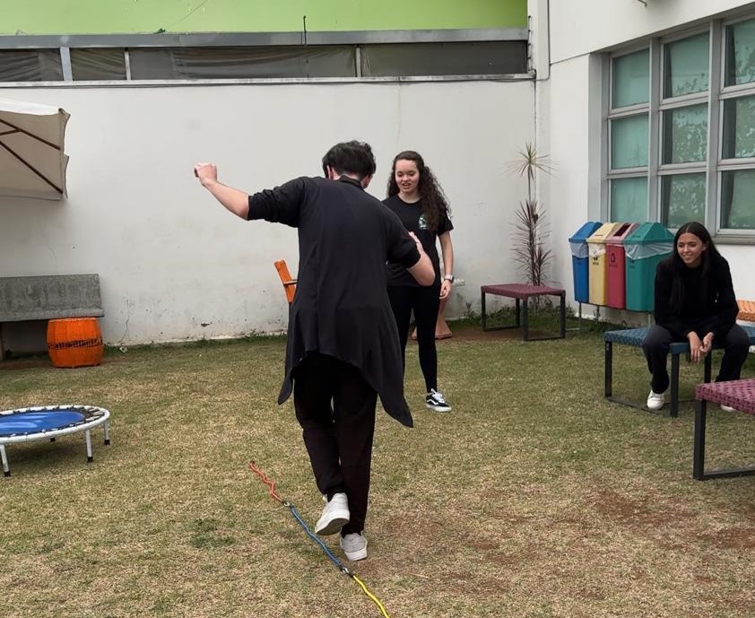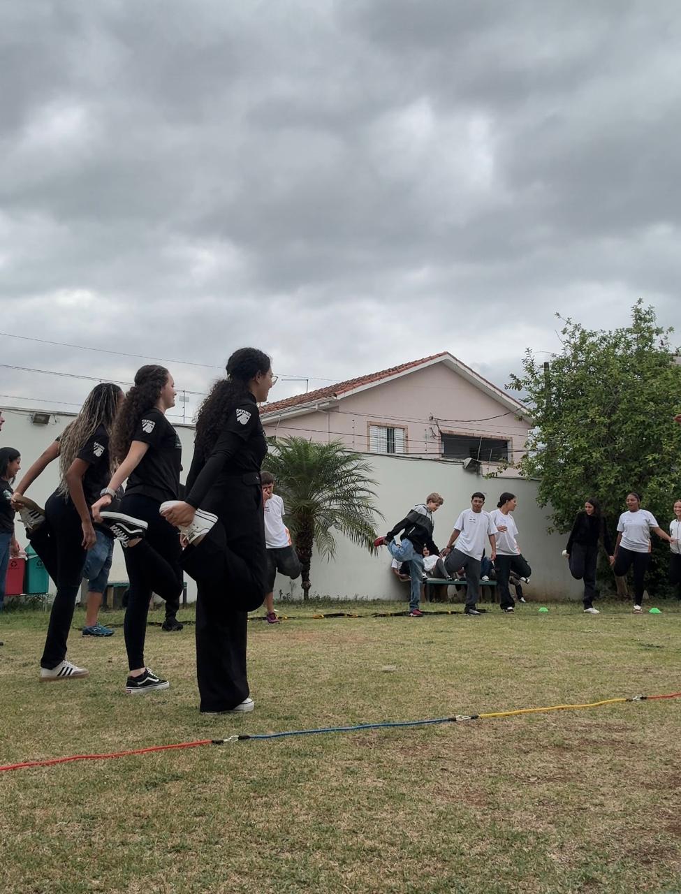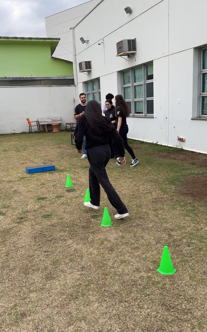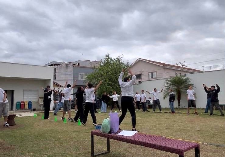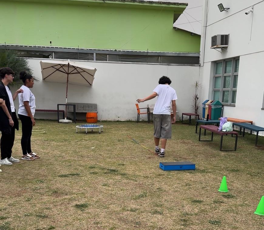 Na sequência, os estudantes participaram de uma intervenção prática, composta por exercícios de alongamento e um circuito de atividades interativas. “A comparação dos resultados obtidos antes e depois do exercício permitirá verificar os efeitos da prática sobre a concentração e o desempenho cognitivo dos jovens. Espera-se que os exercícios de alongamento contribuam para o aumento da atenção e da agilidade mental, refletindo em melhores resultados nos testes aplicados após a intervenção”, explica Diego.