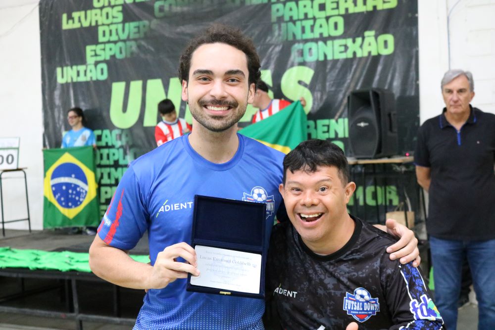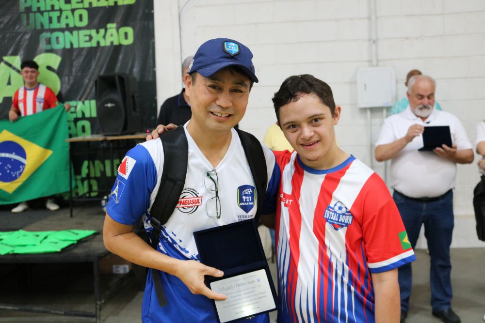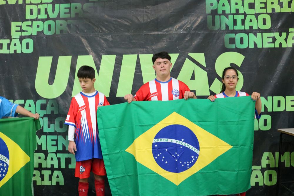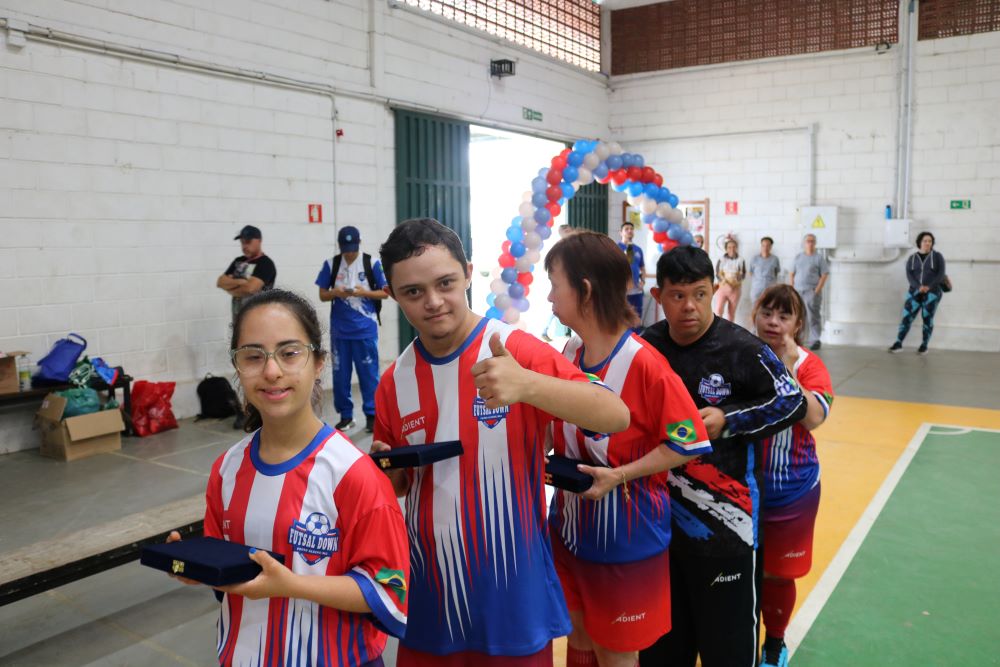 Os participantes receberam de presente de aniversário de três anos o novo uniforme do Futsal Down PA. A idealizadora, coordenadora e professora Lúcia de Oliveira Silva, falou sobre a importância do projeto esportivo e social. “Participar dessa atividade tão importante significa amor. É muito gratificante ver o desenvolvimento deles. Desde julho, quando a gente veio para cá (FUVS), a gente está conseguindo fazer um trabalho melhor, usando duas quadras, e o apoio está sendo fundamental nos jogos, na participação, em tudo. Esse evento aqui só foi possível com o apoio enorme da Univás”, afirma.