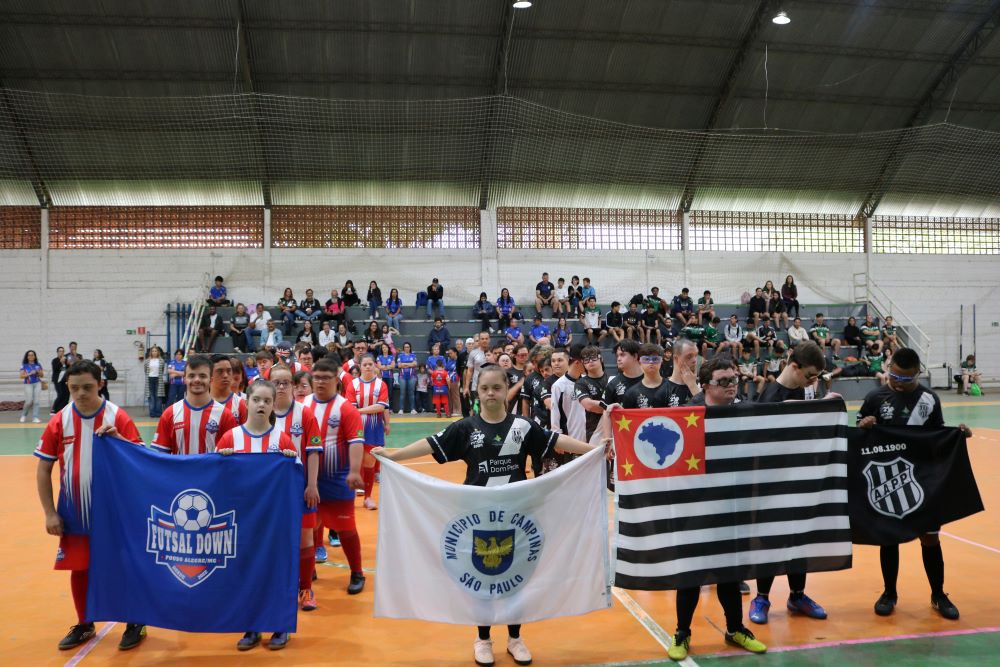 O projeto "Futsal Down PA", apoiado pela Fundação de Ensino Superior do Vale do Sapucaí (FUVS), comemorou três anos de existência neste sábado, dia 8 de novembro, com a realização de um jogo festivo contra o time Ponte Preta de Campinas (SP), no Poliesportivo da Unidade Fátima da Univás. “Hoje nossas crianças estão trazendo alegria para os nossos espaços aqui da Univás. Temos muito a aprender com vocês, esse amor sem limite que vocês nos ensinam todo dia. Nós só ganhamos com a presença de vocês porque aprendemos a amar as pessoas de forma incondicional. Fica aqui meu muito obrigado e minha homenagem a vocês do time e da família Futsal Down, que são pessoas excepcionais e que admiramos muito”, disse emocionado o presidente da FUVS.