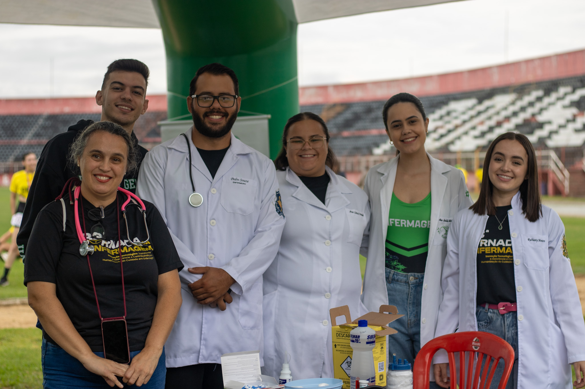 O curso de Educação Física apoiou integralmente os participantes inclusive com alongamento inicial que auxiliou no balizamento e preparação para a corrida. Já o curso de Nutrição fez a avaliação nutricional para corredores e pessoas presentes no local.