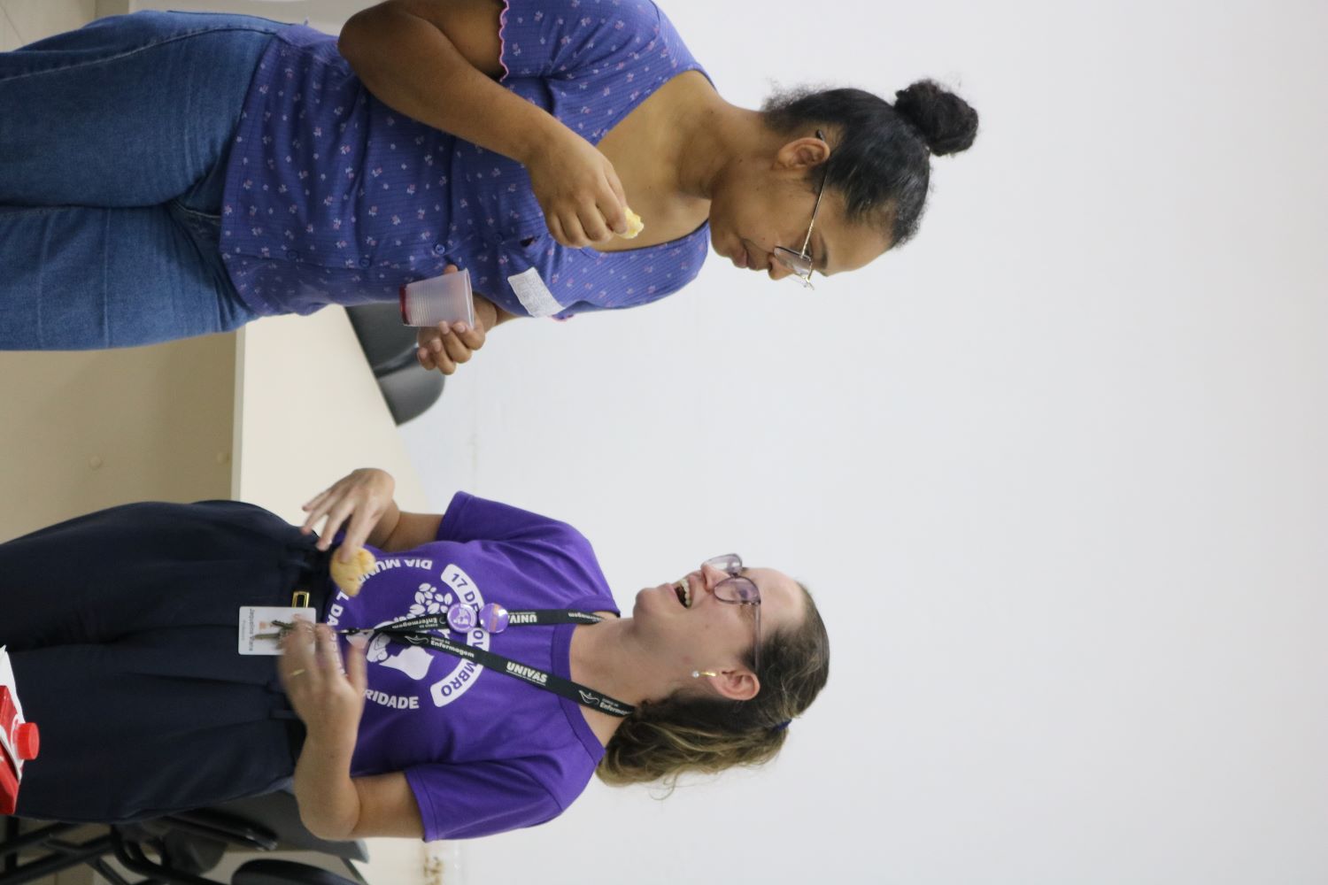 O curso de Enfermagem da Univás realizou uma Roda de Conversas durante a IV Jornada da Prematuridade nesta terça-feira, dia 18 de novembro, na sala 10 da Unidade Central. “Nesse mês, durante a campanha Novembro Roxo, falamos sobre a conscientização das causas da prematuridade. Por isso, preparamos um café da manhã para as mães dos bebês prematuros que estão internados na UTI Infantil do Complexo Hospitalar Samuel Libânio (CHSL). Preparamos esse momento de descontração para conversar e ouvir as mães, como elas estão se sentindo nesse momento”, explica a professora de Enfermagem, Jaqueline Helen Viana.