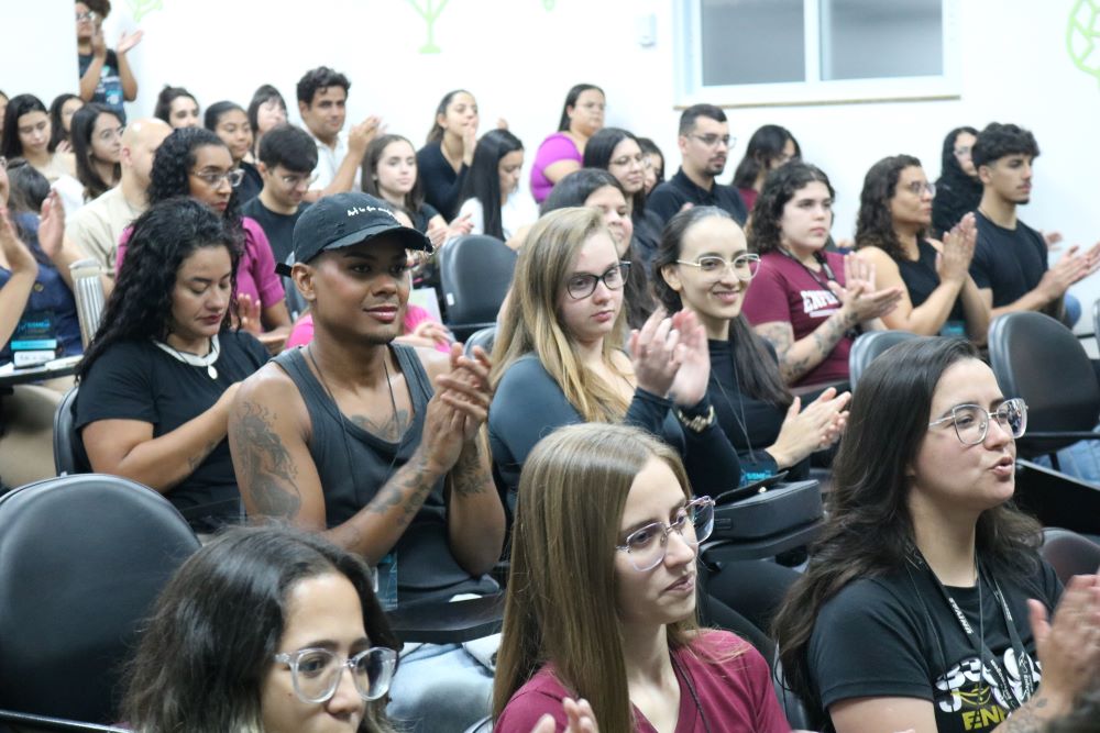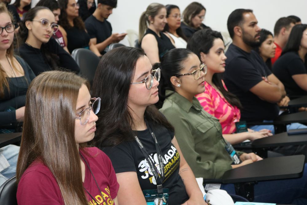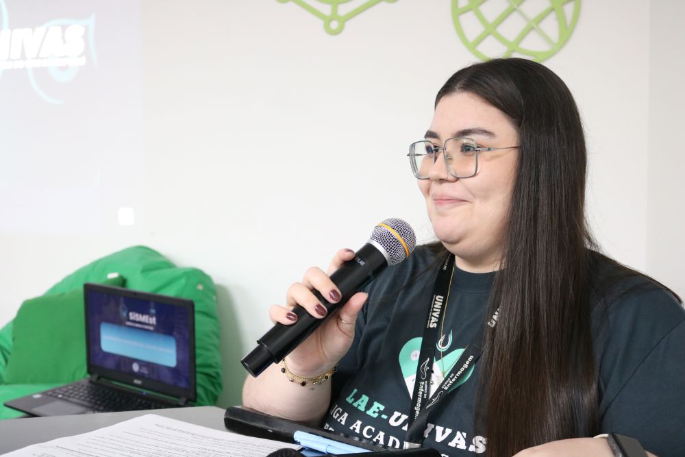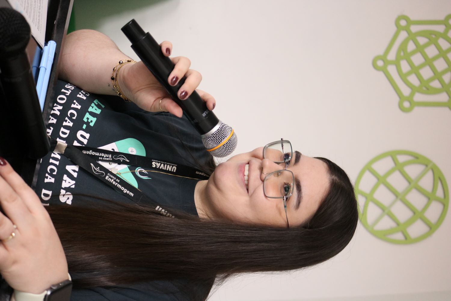 A sessão solene de abertura do I Simpósio Sul Mineiro de Estomaterapia (SISMEst) foi realizada com sucesso na noite desta quarta-feira, dia 19 de novembro, no Auditório Alfa na Unidade Fátima da Univás. “É uma alegria enorme receber vocês para este momento que, sem exagero, marca a história da nossa instituição e da estomoterapia no Sul de Minas. Esse evento nasce de um desejo muito profundo de fortalecer a especialidade da nossa região (...) Quando fortalecemos a estomoterapia, fortalecemos o SUS, fortalecemos os serviços e fortalecemos as possibilidades de atuação dos nossos alunos e profissionais. Para a liga acadêmica de estomoterapia, este simpósio representa muito mais do que um encontro científico, é a oportunidade de viver a especialidade na prática, de dialogar com especialistas, de produzir conhecimento e de compreender que o aprender na universidade só se faz sentido quando se transforma o cuidado real, qualificado e humano(...)Que esse simpósio seja um espaço de troca, inspiração, construção coletiva e reafirmação do nosso compromisso com assistência de qualidade, no SUS, nos serviços privados, no hospital, na atenção primária e também no empreendedorismo”, discursou Jéssica.