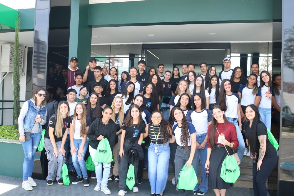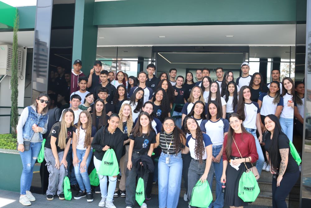 Alunos do 3º ano do Ensino Médio da Escola Estadual Cônego Francisco Stella de Estiva (MG) e seus professores visitaram a Unidade Central da Univás nesta quinta-feira, dia 27 de novembro. Eles conheceram toda a estrutura da Univás. A visita guiada foi coordenada pela equipe comercial do Departamento de Relações Institucionais (DRI) da Fundação de Ensino Superior do Vale do Sapucaí (FUVS).