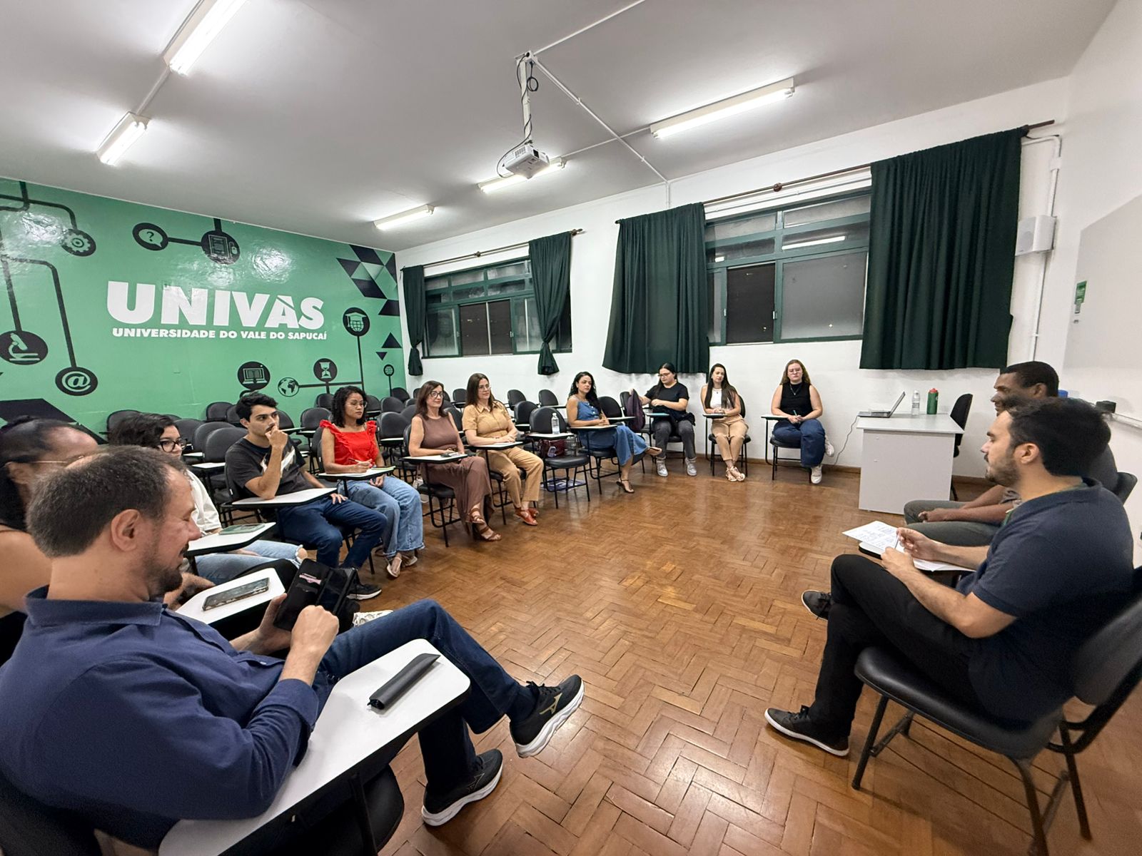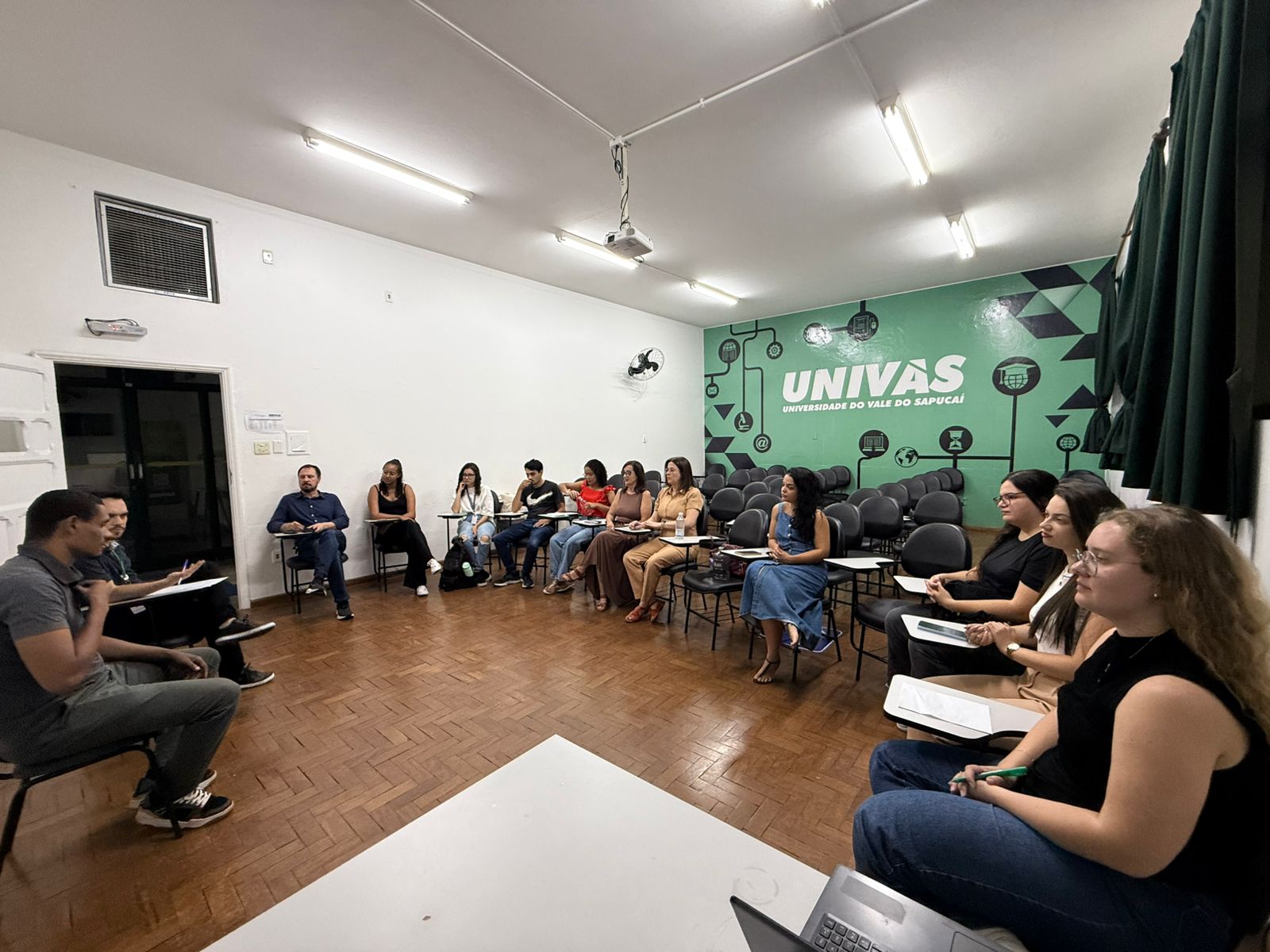 Os formandos do curso de Psicologia da Univás receberam nesta quinta-feira, dia 27 de novembro, o psicólogo fiscal representante do Conselho Regional de Psicologia (CRP), André Luiz de Oliveira. “Os acadêmicos do 10º período, quase egressos, se preparam agora para a entrada no mercado de trabalho como profissionais. A presença do conselheiro André tem o objetivo de fazer essa interlocução entre a nossa instituição, que nos representa enquanto classe, e também aqui os nossos alunos que serão amparados pelo CRP. Para nós é um momento de alegria e de muita importância”, explica o professor Lucas Navaroli.