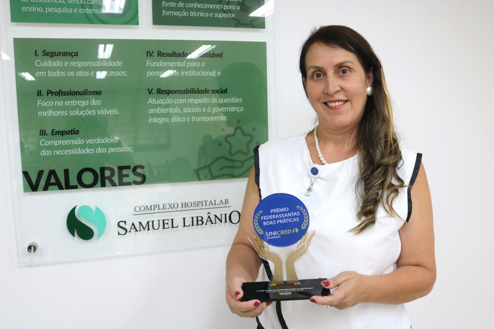 O Complexo Hospitalar Samuel Libânio (CHSL) participou do Prêmio Federassantas Aliança Unicred 2025 e conquistou o primeiro lugar no “Eixo de Gestão Estratégica da Alta Direção”. “Esse prêmio simboliza o reconhecimento do nosso trabalho. Por isso, compartilhamos com todos os nossos profissionais essa grande conquista. Só conseguimos aumentar o desempenho do nosso complexo hospitalar, melhorando a assistência e ampliando o acesso dos pacientes, porque tivemos o engajamento de todos os profissionais. Comprovamos por meio desse prêmio a efetividade do nosso trabalho, um trabalho que elevou nossa classificação de 16º lugar para o 5º melhor hospital em Minas Gerais. Gratidão a todas as pessoas envolvidas”, comemora a diretora administrativa do CHSL, Jusselma Reis.