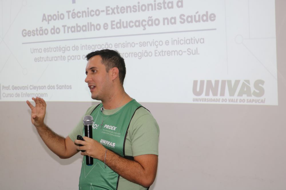 O projeto Apoia GTES, coordenado pelo professor Geovani, consiste em uma iniciativa de apoio à Gestão do Trabalho e da Educação na Saúde junto aos municípios da macrorregião, alinhada à implementação de políticas públicas na área. “Inicialmente, serão contemplados os municípios de Natércia, Careaçu e Tocos do Moji, com atividades in loco voltadas à educação permanente em saúde e ao dimensionamento da força de trabalho. O projeto é desenvolvido em parceria com a Comissão do Plano Macrorregional de Gestão do Trabalho e Educação na Saúde e com a CIES”, conta o professor Geovani (foto abaixo).