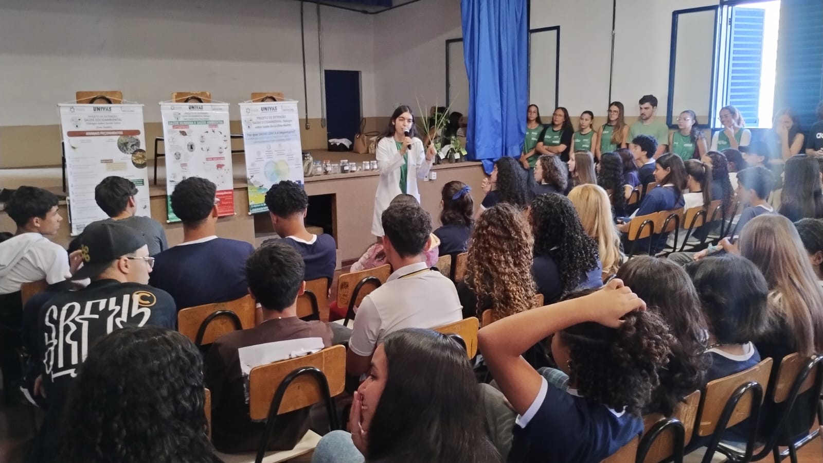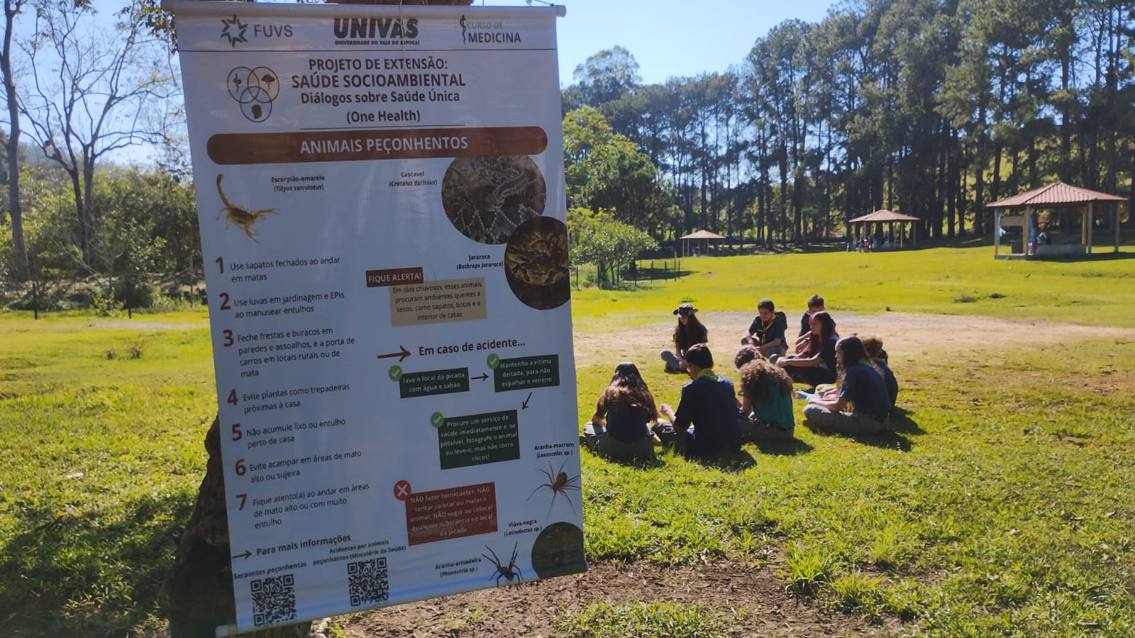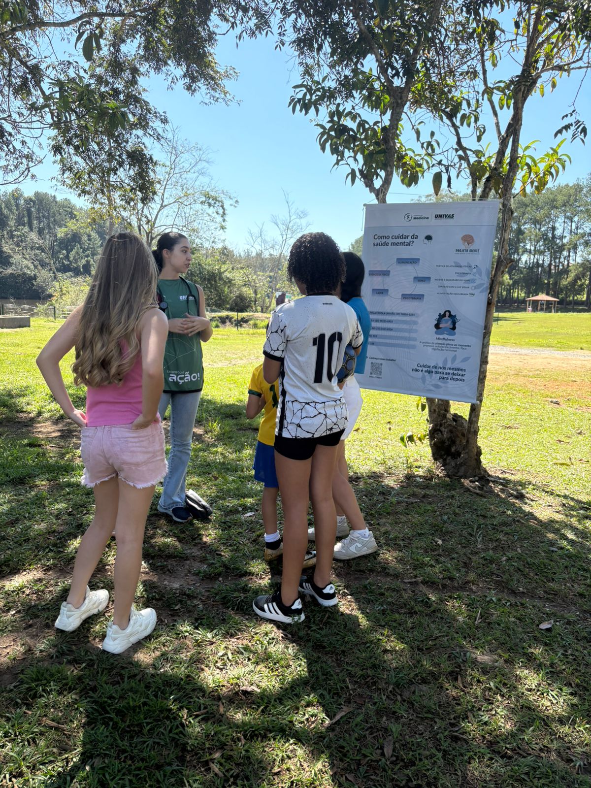 Acadêmicos de Medicina da Univás levaram conhecimentos sobre Saúde Socioambiental e Saúde Mental durante ações realizadas nos dias 17 e 18 de abril no Colégio Estadual José Marques de Oliveira e no Parque Natural Municipal Fernando Bonillo (Horto Florestal).