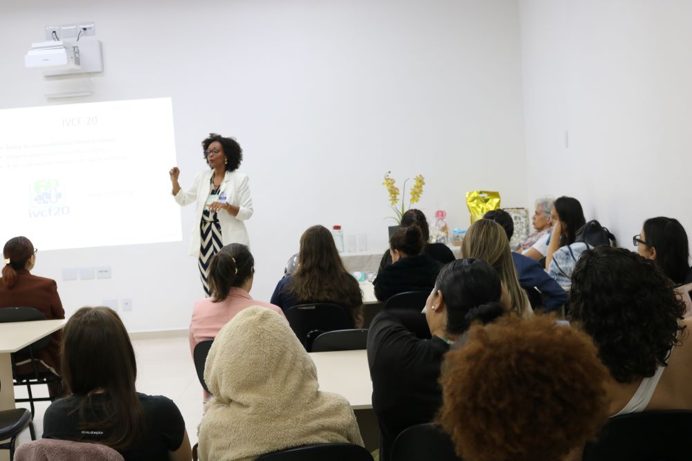 O seminário contou primeiramente com a palestra da Dra. Joelisa Silva Pereira que falou sobre o tema “Desmistificando Avaliação Geriátrica Ampla (AGA) e simplificando o uso do IVCF-20 na avaliação de idosos na porta de entrada da Estratégia de Saúde da Familia (ESF)”.