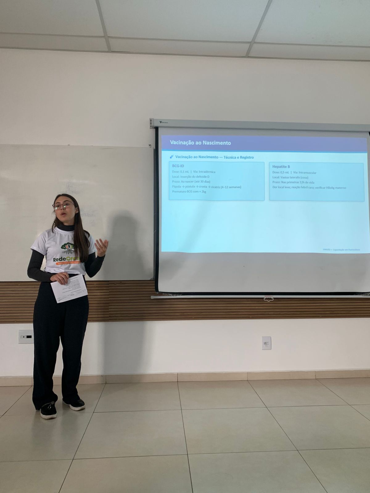 Neste primeiro encontro, foram abordados temas fundamentais para a assistência à criança, como a Política Nacional de Atenção Integral à Saúde da Criança (PNAISC), o acolhimento à família, o exame físico do recém-nascido, a amamentação e o acompanhamento do bebê prematuro. “Também foi apresentado um panorama sobre a mortalidade infantil relacionada a doenças evitáveis, reforçando a importância da atuação qualificada e oportuna dos profissionais da Atenção Primária na prevenção de agravos e na promoção da saúde infantil”, acrescenta Jaqueline.