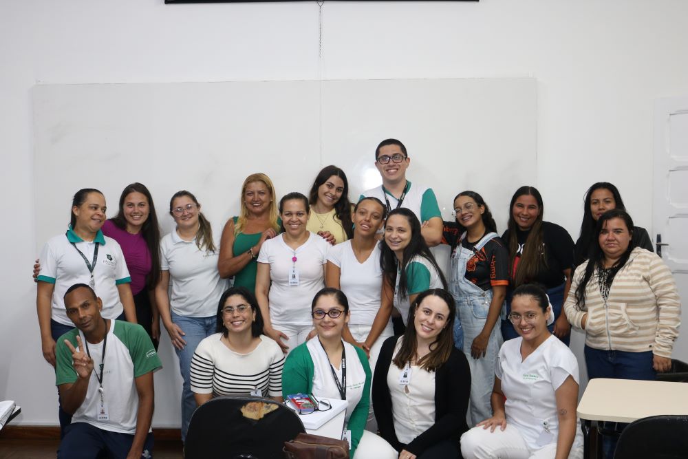 A psicóloga do CJPII, Júlia Faria, preparou uma dinâmica chamada de “telefone sem fio com mímica” que traz uma mensagem que o cuidado nunca é um ato isolado e sim uma construção coletiva. “A área da saúde exige sensibilidade para perceber além do óbvio e responsabilidade para transmitir aquilo que vemos com respeito e precisão. Que essa atividade simbolize o início de uma jornada em que vocês não vão caminhar sozinhos. Cada colega aqui será parte da rede de apoio que vocês vão construir. Que vocês nunca esqueçam que comunicar bem é cuidar melhor, e cuidar melhor é transformar vidas”, refletiu a psicóloga do CJPII.