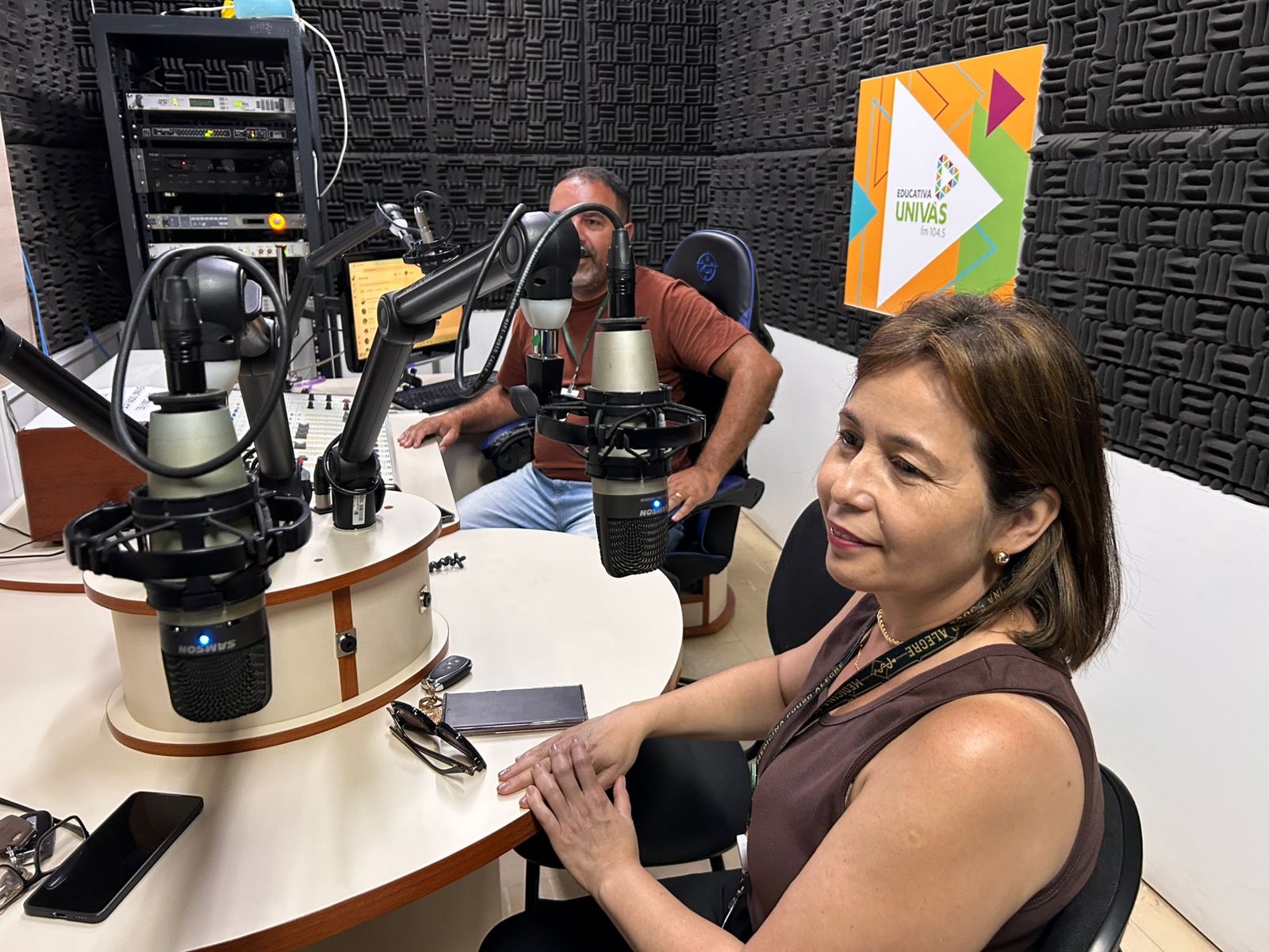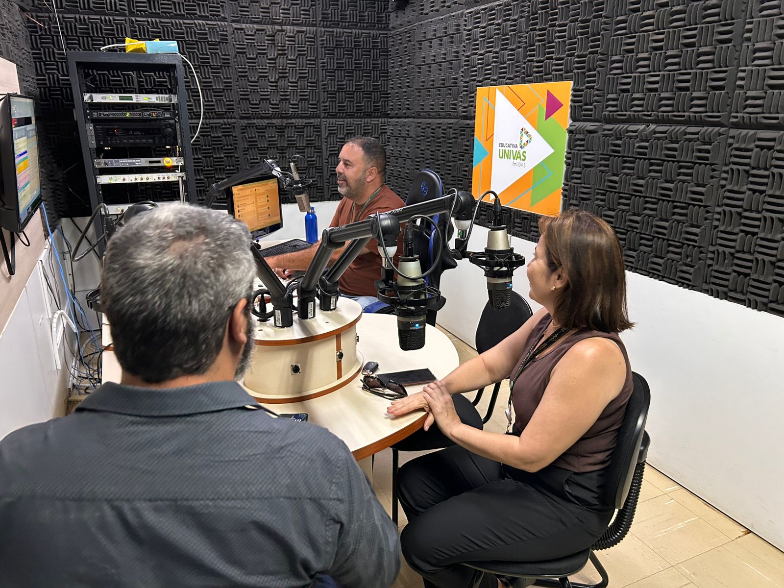 A pró-reitora de Extensão e Assuntos Comunitários (PROEX) da Univás e diretora da Unidade Central, Silvia Mara Tasso, e o coordenador da PROEX e do curso de Fisioterapia, Diego Openheimer, falaram sobre o 1º Prêmio de Responsabilidade Socioambiental realizado em parceria com a empresa Prática na Educativa Univás FM.