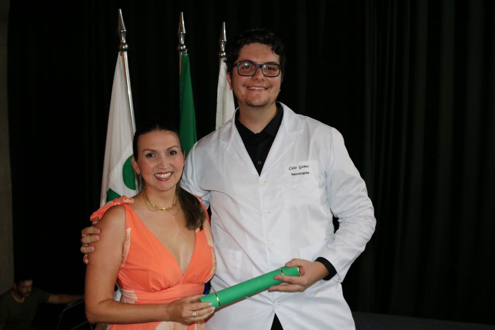 A coordenadora da Residência Médica, Dra. Letícia Maria Soares discursou aos formandos, familiares e amigos. “Hoje, vejo aqui médicos amadurecidos. Profissionais capazes de decidir com segurança, agir com responsabilidade e compreender o peso ético de cada conduta. Vocês deixam esta instituição como especialistas. Mas esperamos que retornem como líderes, como parceiros, como parte do nosso corpo de excelência. As portas estão abertas. A expectativa é alta pois acreditamos na capacidade de cada um de vocês. Sigam com excelência, com ética, com responsabilidade e, sobretudo, com humanidade”.