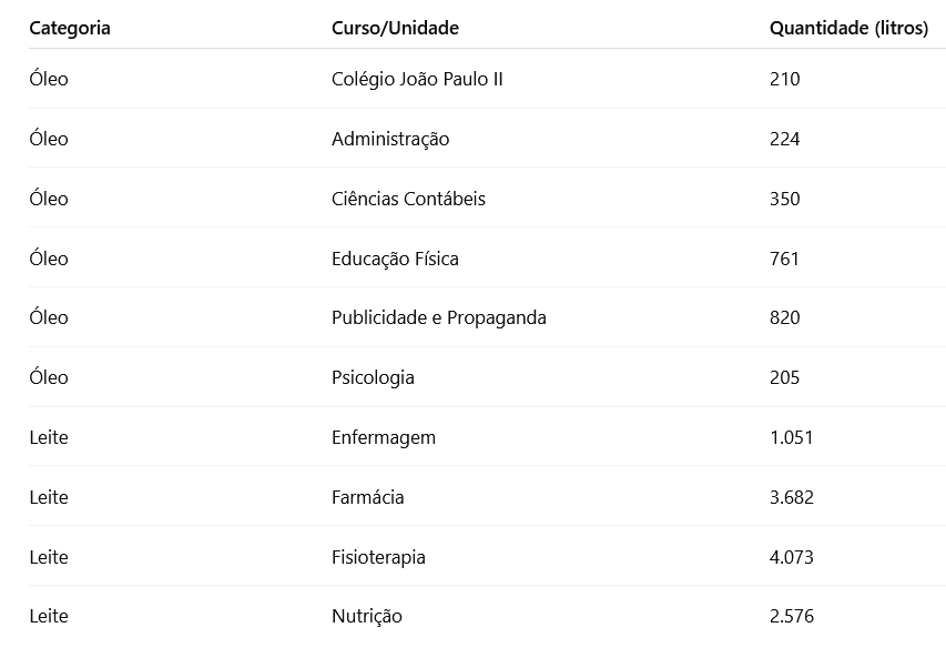 Neste início de ano, acadêmicos da Univás e alunos do Colégio João Paulo II uniram forças para realizar o Trote Solidário, que tem a iniciativa especial de arrecadar litros de leite e óleo para doar ao Complexo Hospitalar Samuel Libânio (CHSL). Na noite desta segunda-feira, dia 16 de março, foi revelado que a ação solidária arrecadou no total de 11.382 litros de leite e 2.559 litros de óleo.