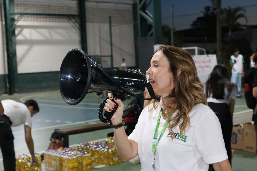 Para a pró-reitora de Graduação da Univás, Joelma Faria Nogueira, a entrega dessas doações não apenas representa um gesto de generosidade, mas também evidencia o espírito colaborativo e a vontade de fazer a diferença na vida das pessoas. “Não é uma universidade(?) Não é um complexo de diversidade(?) Então, a nossa proposta é essa: Unidade Fátima, Unidade Central, Colégio João Paulo II, cursos da saúde, cursos da gestão, os cursos técnicos, todos juntos em prol de um bem maior, que é o Complexo Hospitalar Samuel Libânio. Nosso grande objetivo aqui, mais do que arrecadar o óleo e o leite, é conjugar todo mundo, é fazer com que as pessoas percebam que isso é a vida, é trabalhar em conjunto, é atuar em conjunto para o bem do próximo. Quando nós estamos aqui, fazendo esse trote maravilhoso, nós estamos cuidando de pessoas, ajudando a cuidar desse deste Complexo Hospitalar que é fundamental para saúde para milhares de pessoas. Não importa quem vai ganhar, quem vai perder no montante geral. Na verdade, todo mundo sai vitorioso nessa noite solidária”, discursou Joelma Nogueira.