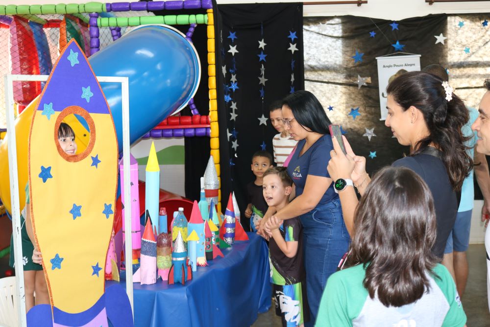 As crianças da Educação Infantil do Colégio Anglo Pouso Alegre embarcaram em uma jornada incrível inspirada no livro “O brinquedo gigante”, da escritora Débora de Oliveira, que culminou em uma exposição de foguetes realizada na tarde desta terça-feira, dia 16 de março.