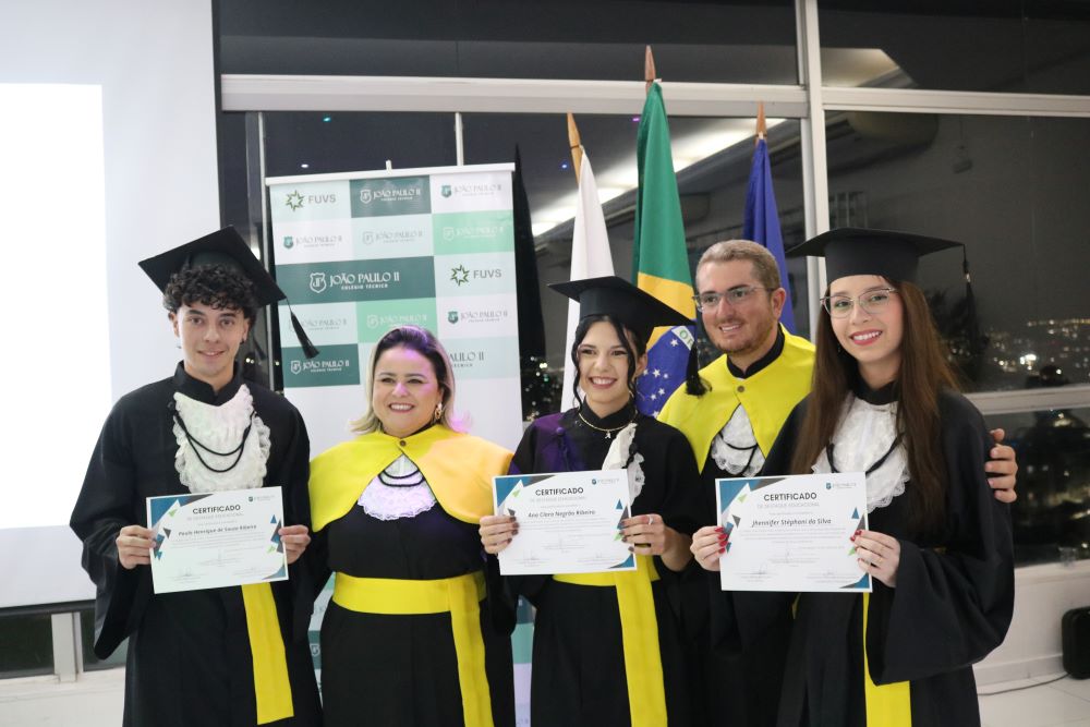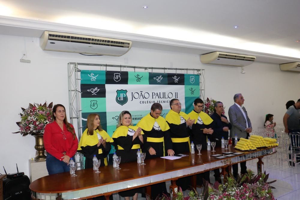 A mesa solene foi formada pelo diretor do Colégio Técnico João Paulo II, Wesley Oppenheimer de Carvalho; a representante da FUVS e diretora administrativa do Complexo Hospitalar Samuel Libânio (CHSL), Jusselma Reis; o Deputado Federal, Rafael Simões; o Deputado Estadual Dr. Paulo Valdir; a vice-diretora do Colégio João Paulo II, Jussara Meire Rodrigues; o paraninfo do curso Técnico em Farmácia, Reginaldo Raimundo de Oliveira; o patrono do curso Técnico em Farmácia, João Pedro da Costa Olivieri; e a coordenadora pedagógica, Alessandra Fernandes de Souza Bueno.